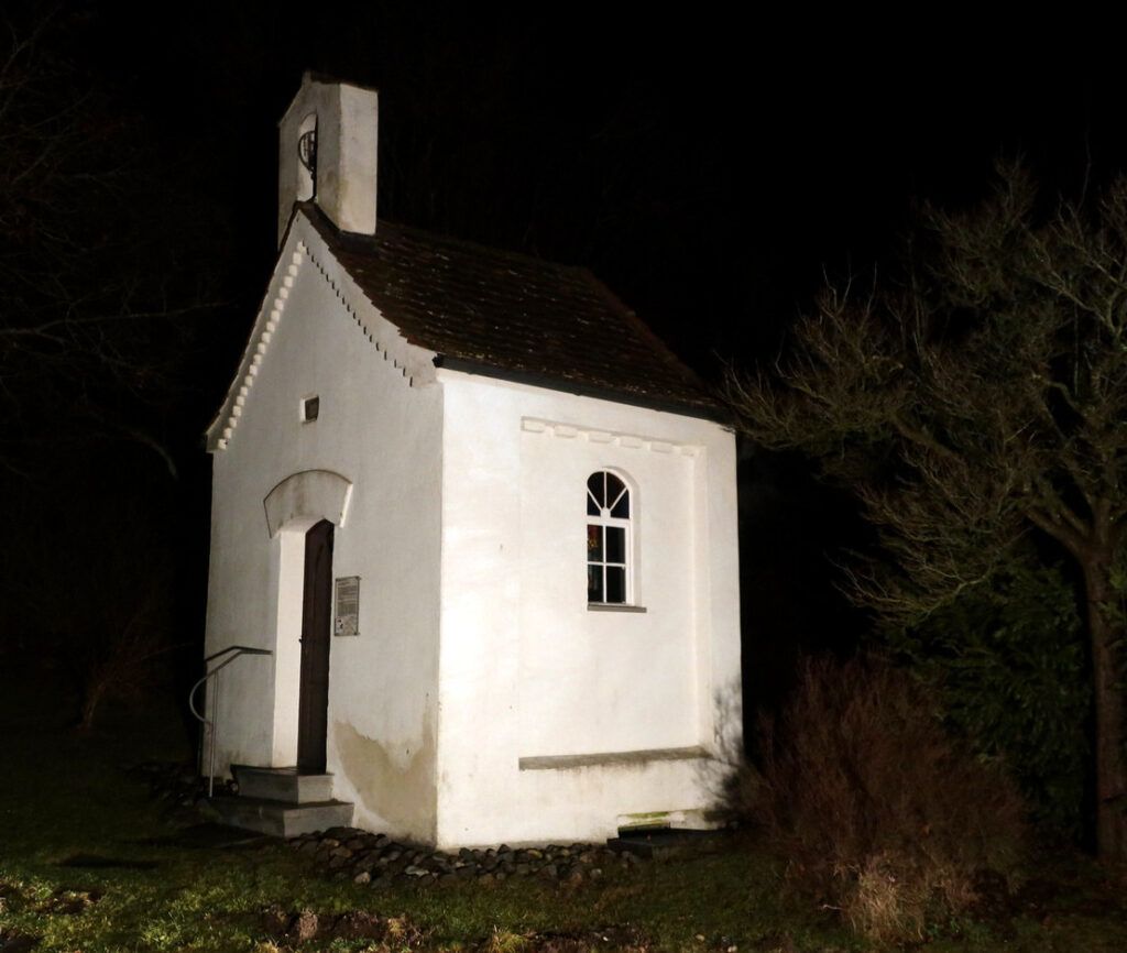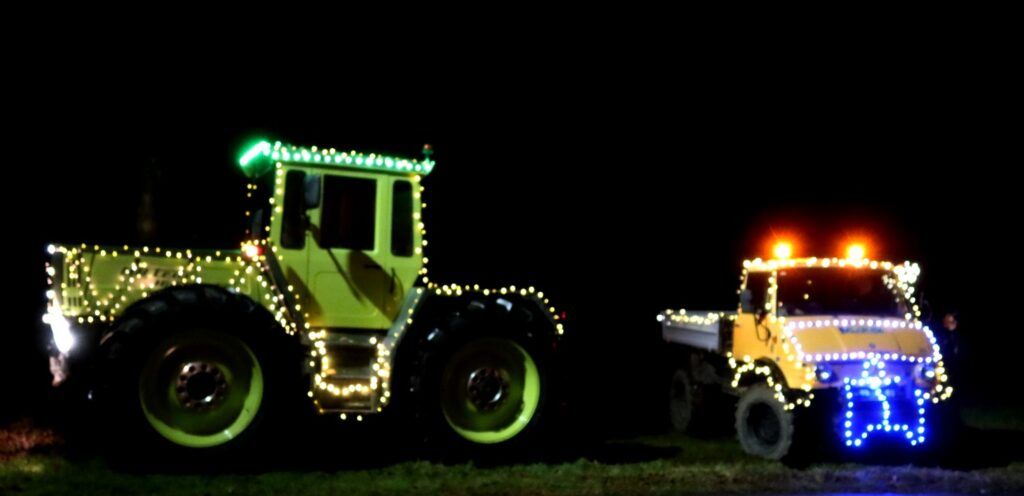Zwei Tage vor Heiligabend (Sonntag, 22. Dezember) beglückten die Sänger beim traditionellen Kapellensingen im Haistergau die treue Zuhörerschaft in der St. Laurentius Kapelle in Ehrensberg und danach in Hittisweiler. Schon traditionsgemäß wurden die Sänger in Ehrensberg und Hittisweiler von spendablen Einheimischen mit feinem Gebäck sowie heißen und wärmenden Getränken belohnt. Beim Auftritt in Hittisweiler vor dem Haus Gambichler, nur wenige Schritte entfernt von der angestrahlten Hittisweiler Kapelle „Maria Schnee“, verbreiteten hier zwei mit Lichterketten geschmückte Großfahrzeuge ebenfalls weihnachtliches Flair.