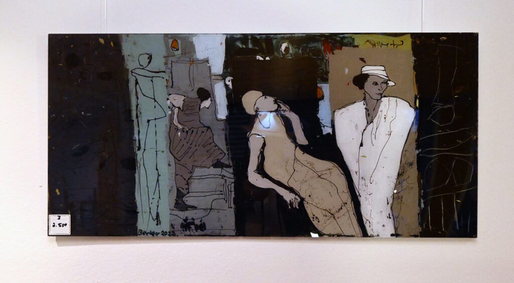 In kräftigen schwarzen Konturen gibt sie den Gesichtern und Figuren Form, Halt und Ausdruck. Kräftige Farben der Kleider kontrastieren mit dunklen Hintergründen. Heidrun Becker hat sich auf ihrem Weg zur Malerei einen durchaus eigenen Stil und Duktus erarbeitet.