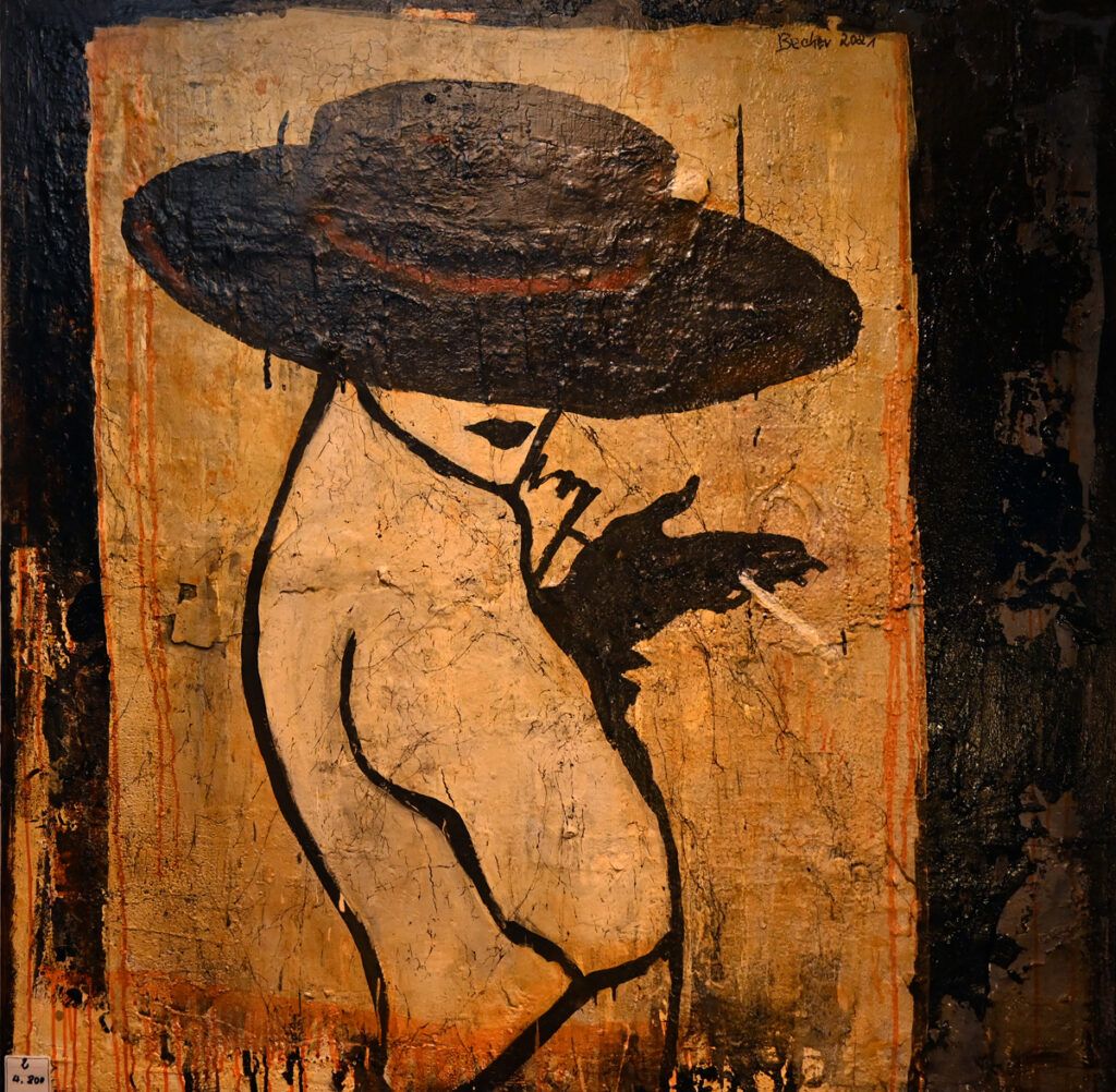 Heidrun Beckers Frauenbilder spüren dem Typus der Frau dieser 20er-Jahre nach. Mal mit Zigarette in der Hand, mal mit den typischen eng anliegenden Hüten. Mit ausdrucksvolle Augenpartien mit kräftigen Lidschatten, üppig rot geschminkten Lippen, großen Ohrringen bringt sie die emanzipatorischen Versuche dieser Frauen zum Ausdruck. Offensichtlich selbst fasziniert von diesen glamourösen Jahren bringt sie den Glamour in ihre Bilder.
