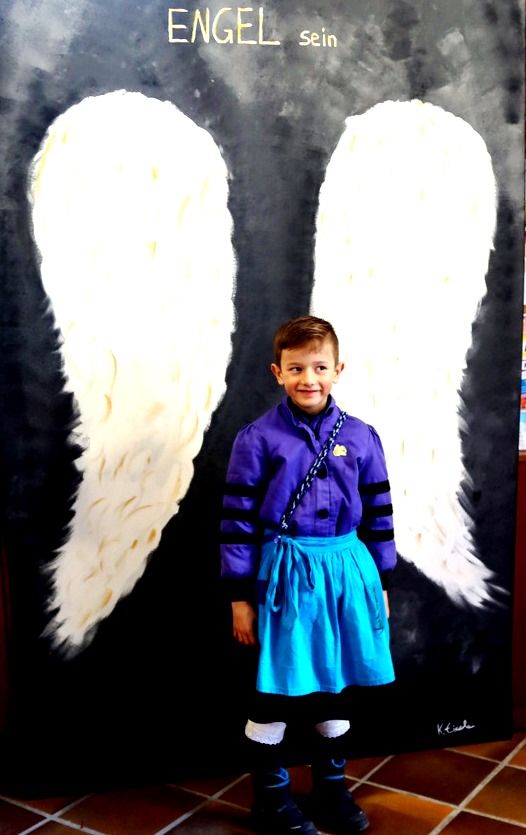Zur Erinnerung konnten sich die Gottesdienstbesucher im Vorzeichen der Kirche unter dem Schriftzug „Engel sein“ zwischen Engelsflügeln ablichten lassen.