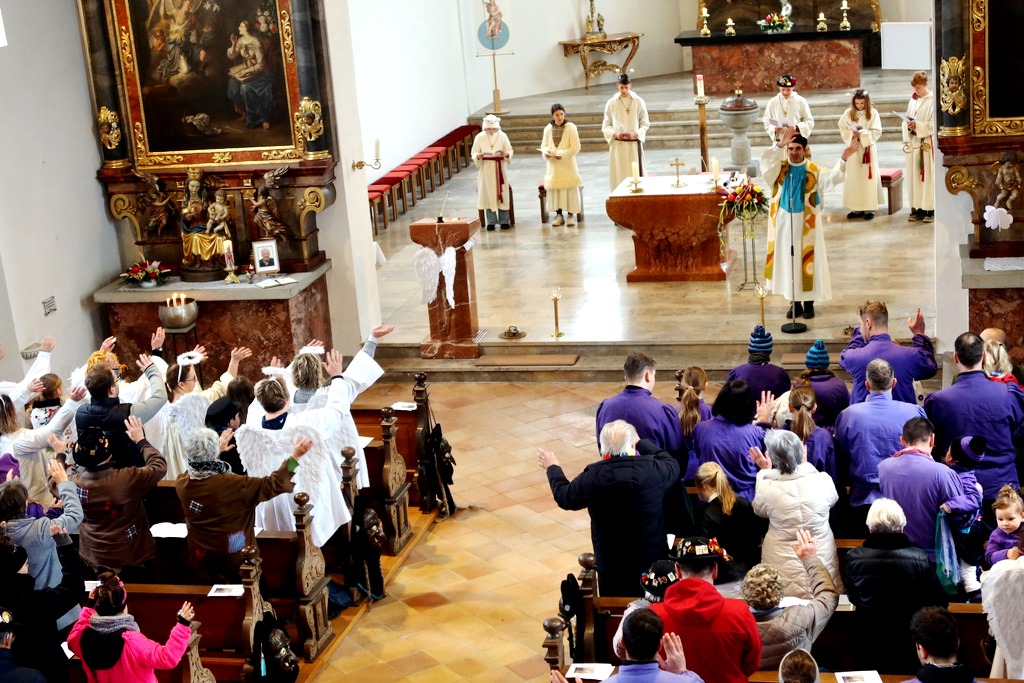 Wirkungsstark war auch die musikalische Begleitung. An der Orgel überzeugte Verena Westhäußer wie gewohnt mit perfekter Intonation aller Lieder, genauso wie mit ihrer „himmlischen“ Stimme. Dass auch der „Waldseer Narrenmarsch“ und am Ende das „Waldhexenlied“ mit Orgelklängen bestens ankamen, bestätigte der mächtige Applaus für den „Engel“ an der Orgel, nach dem Dankeschön durch Pfarrer Stefan Werner und dem „Vergelt´s Gott für das erfreulich große Engagement des Vorbereitungsteams dieses Familiengottesdienstes. Die gereimten Predigtworte von Pfarrer Werner, stets unterbrochen durch deutliche „Halleluja- und Hosianna“-Rufe, fielen sicherlich auf fruchtbaren Boden bei all den gekommenen Gläubigen aus der Seelsorgeeinheit.