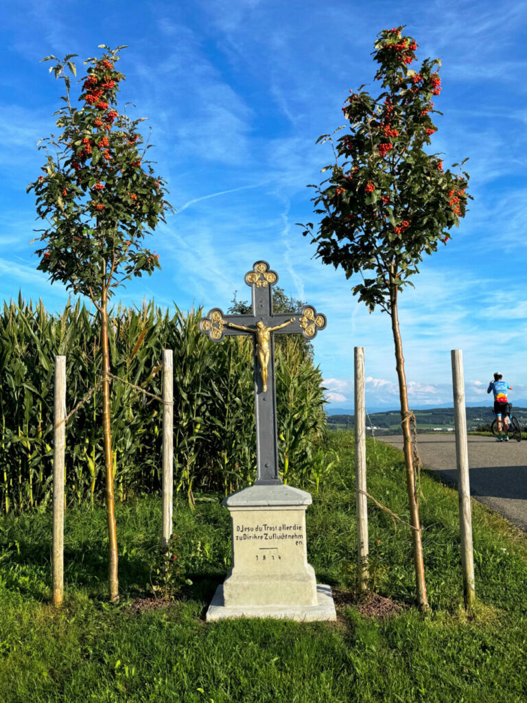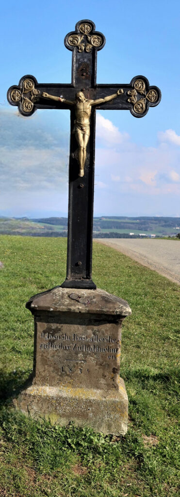 Das gusseiserne Kreuz an dieser exponierten Stelle möge all den Besuchern dieses Ortes noch lange als ein Zeichen der Hoffnung und des Trostes wirken, so wie es auf dem Sockel vermerkt ist: „O, Jesus du Trost aller, die zu Dir ihre Zuflucht nehmen.“