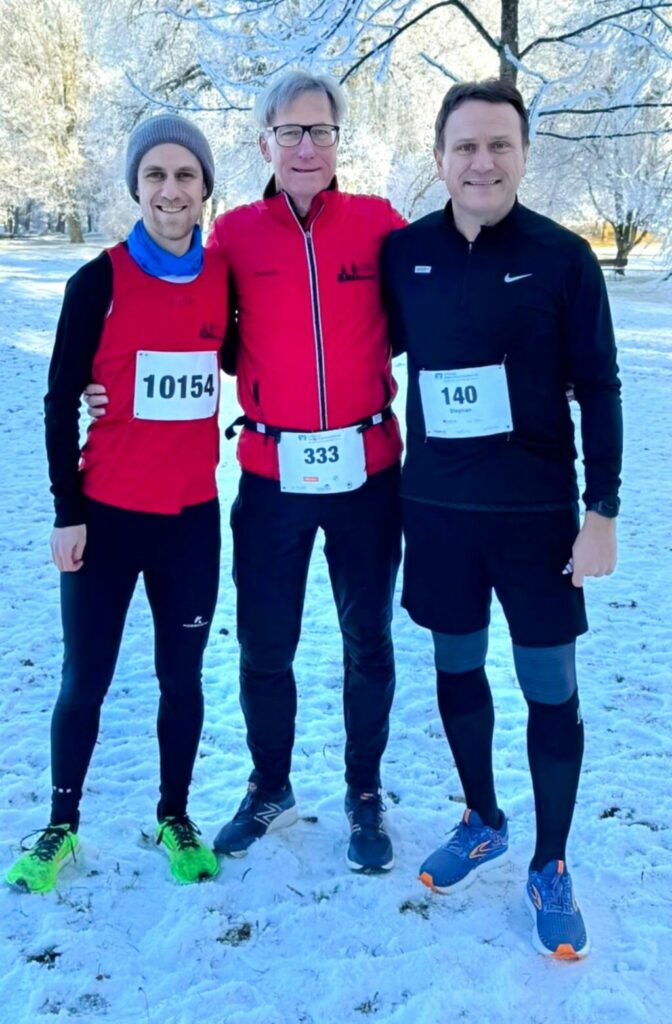 Sivesterlauf 2024, in Kisslegg. Von li. Julian Zimmermann, Dietmar Kleber und Stephan Jäggle