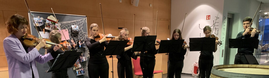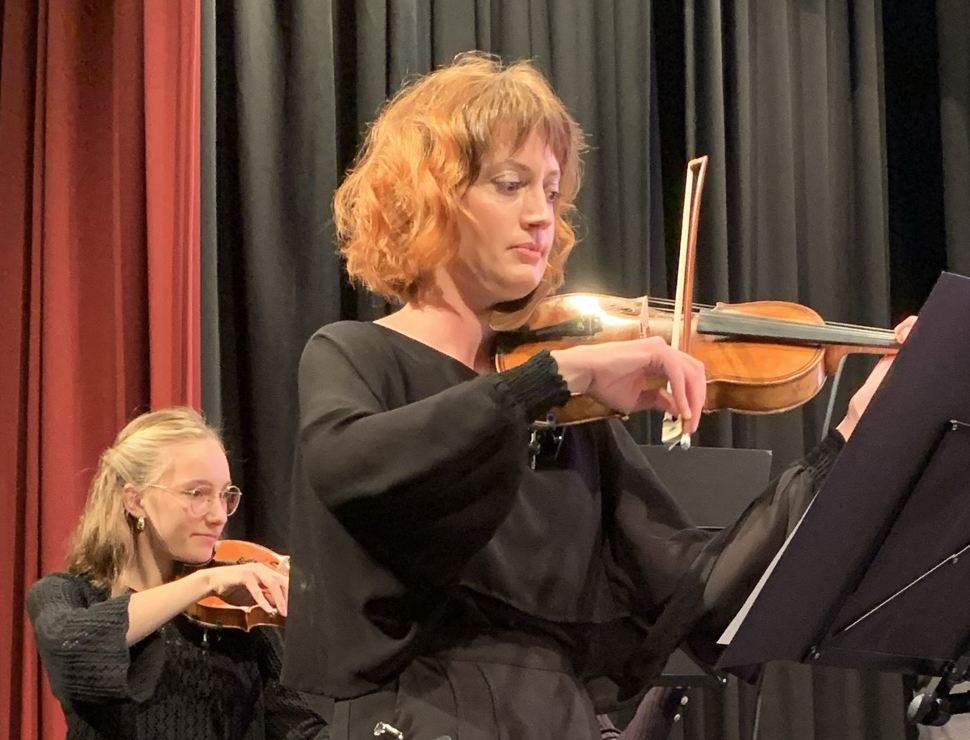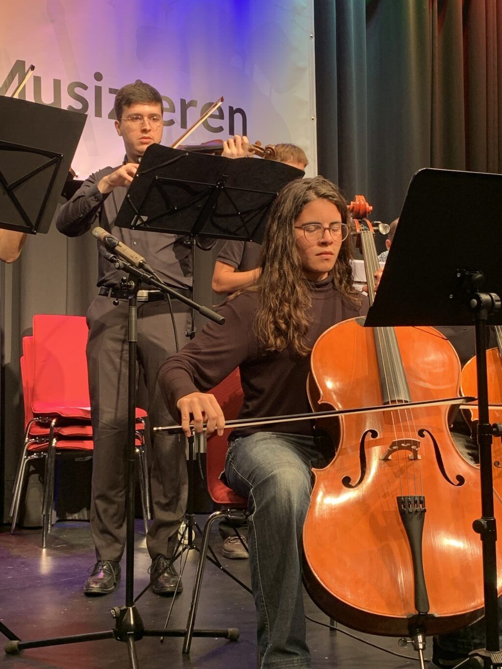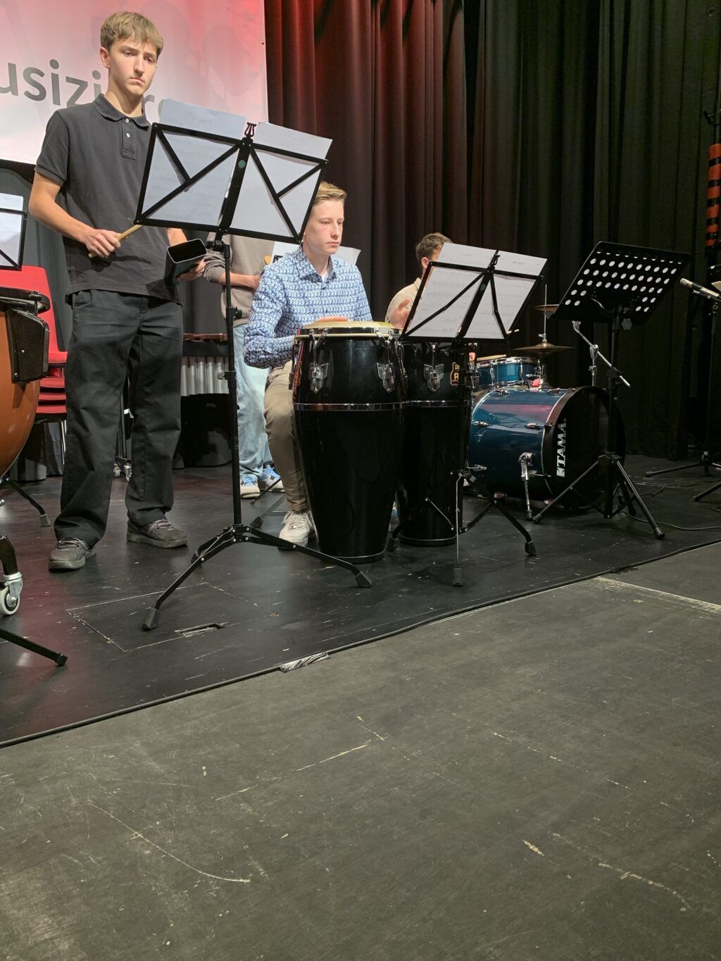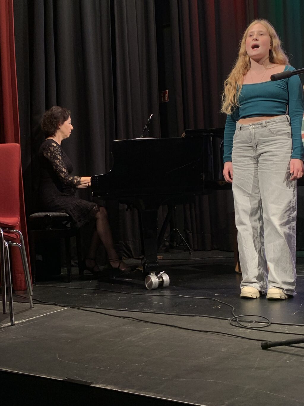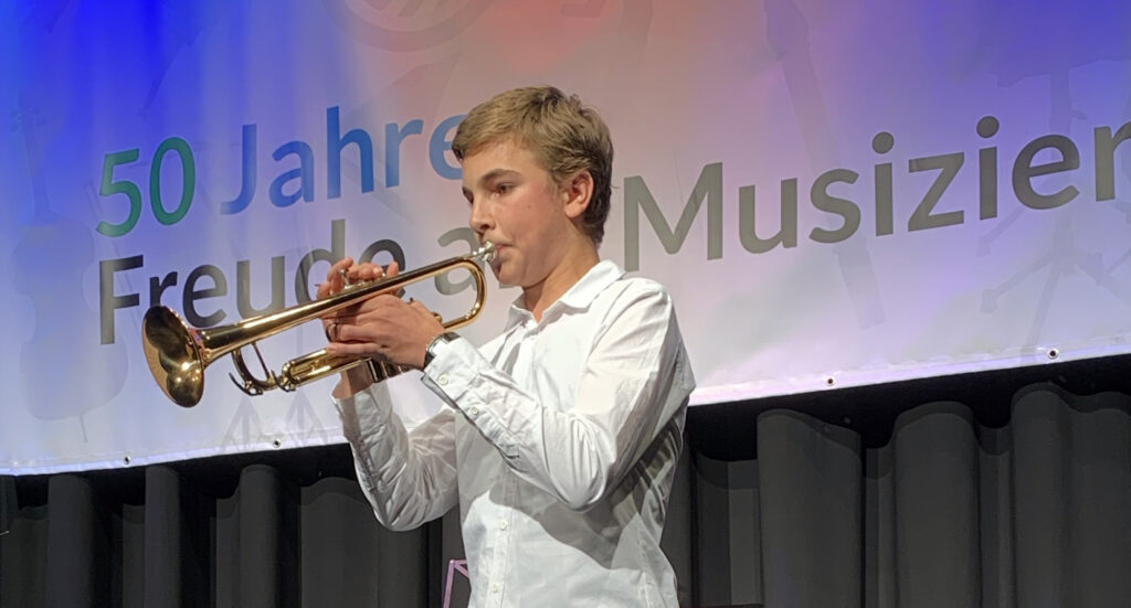Ulrich Triebels Trompetenklasse vertrat bravourös Noah Kössler, begleitet von Johannes Tress am Flügel, mit zwei anspruchsvollen Stücken: „Sarabanda“ und „Cavalier“ von A. Corelli.