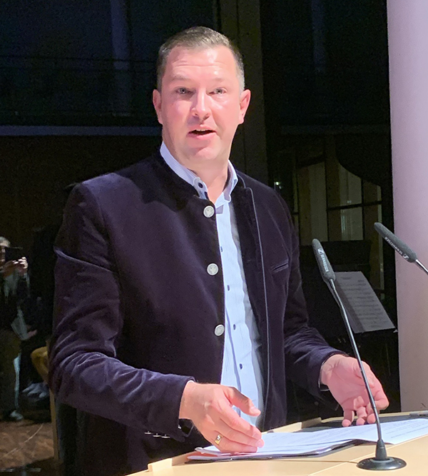 Erster Vorsitzender Mario Pfob begrüßte die große Gästeschar und erklärte, was Musik für ihn persönlich bedeute und leiste. Beim Spiel der Geige, des Klaviers oder der Oboe empfinde er Loslösen vom Alltagsstress und nachhaltige Entspannung. Über Musik begegne er besonderen Menschen, mit Anderen könne man Musik spüren und empfinden. Viele Musizierende sehen dies als Freizeitgestaltung, aber auch Karrieren als Berufsmusiker gebe es immer wieder. Musik sei auch stets offen für eine Weiterentwicklung und sehe deshalb einer positiven Zukunft entgegen. Die vergangenen 50 Jahre unserer Jugendmusikschule hätten das bewiesen und in den kommenden 50 Jahren möge das Bad Waldsees musikalische Bildungsarbeit erneut unter Beweis stellen, wünscht und hofft Pfob.