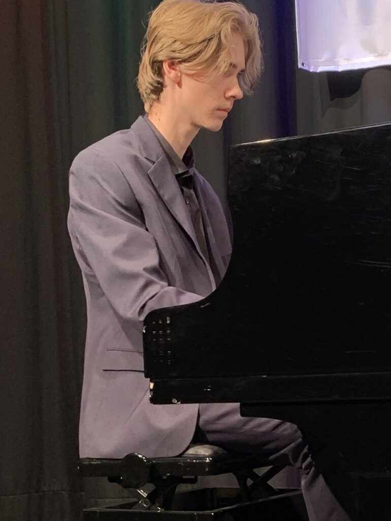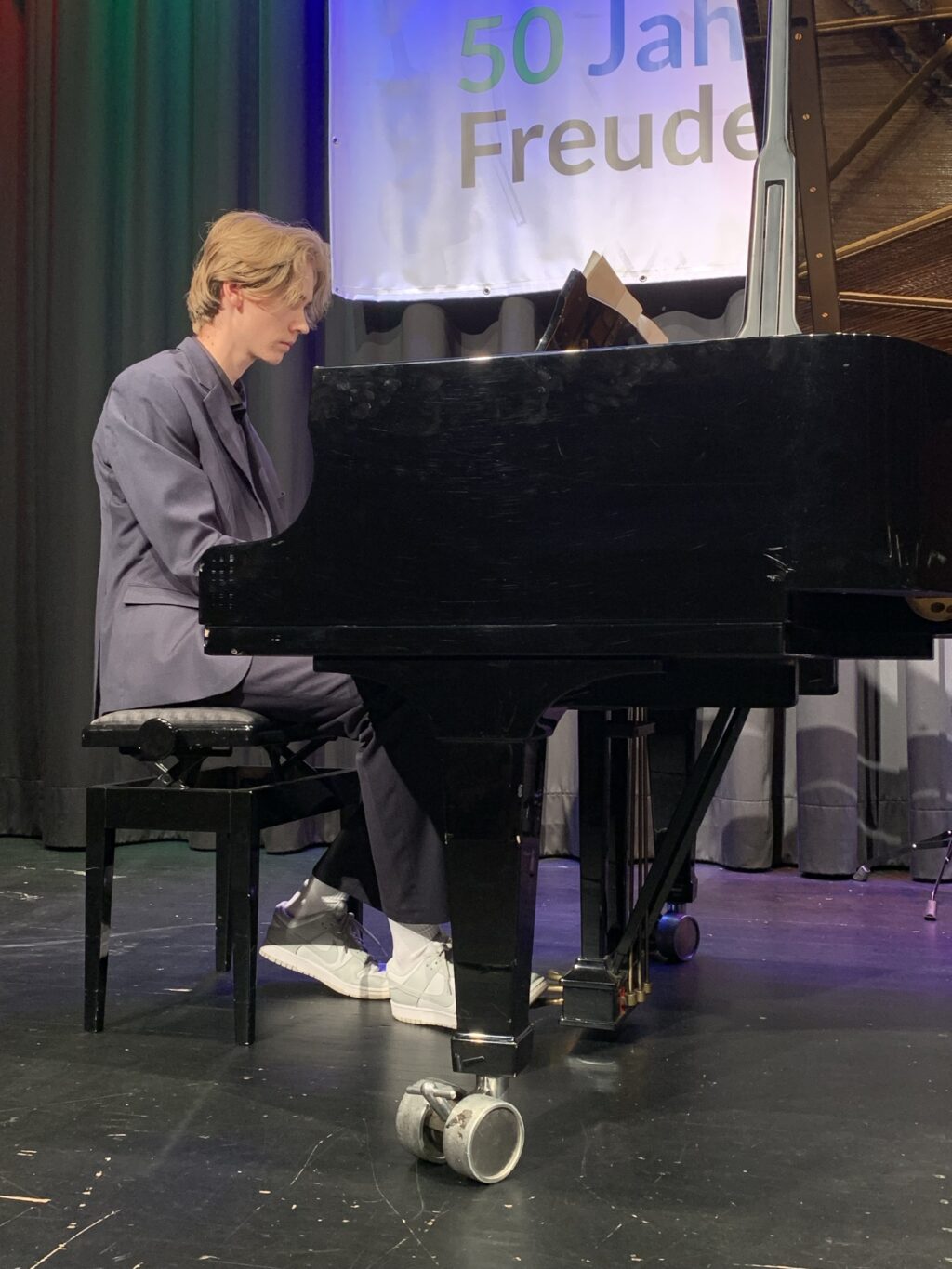 Einen herausragenden und reifen Beitrag lieferte Jungpianist Luca Merk von Becker-Schramms Klavierklasse mit „Prelude in cis-moll‘ von Sergei Rachmaninoff. Äußerst schwierige Passagen oder Läufe beherrschte Luca fast mühelos!