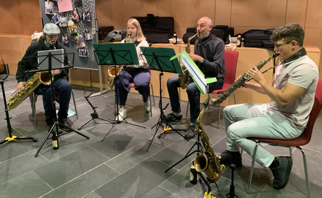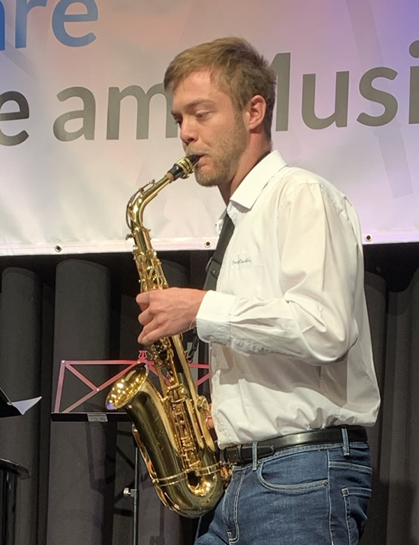 Die Saxophon- bzw. Klarinettenklasse von Reinhard Espe wartete mit von Philipp Rottweiler am Saxophon brillant vorgetragenem „Carneval von Venedig“ auf. Johannes Tress begleitete ihn einfühlsam am Flügel.
