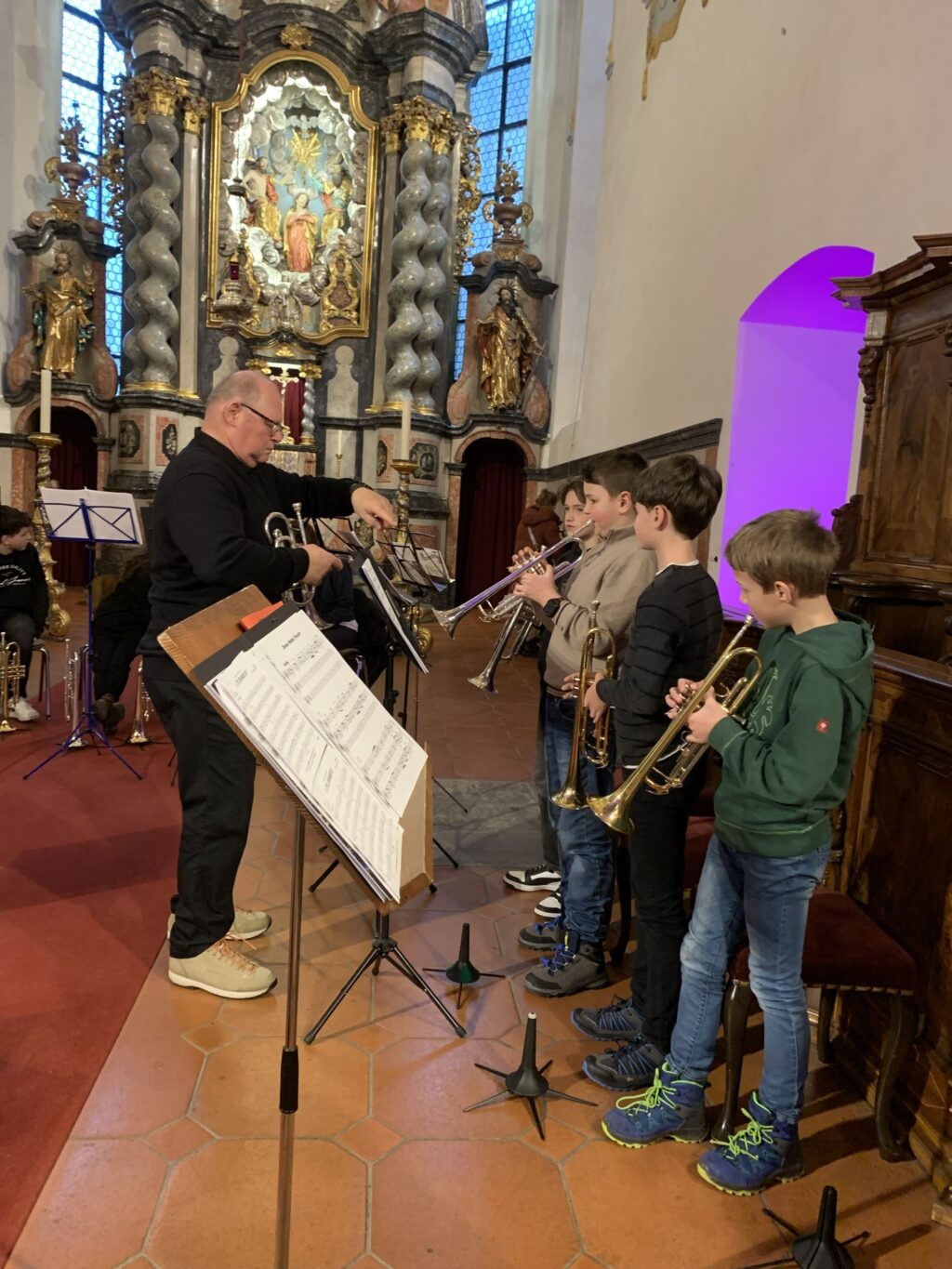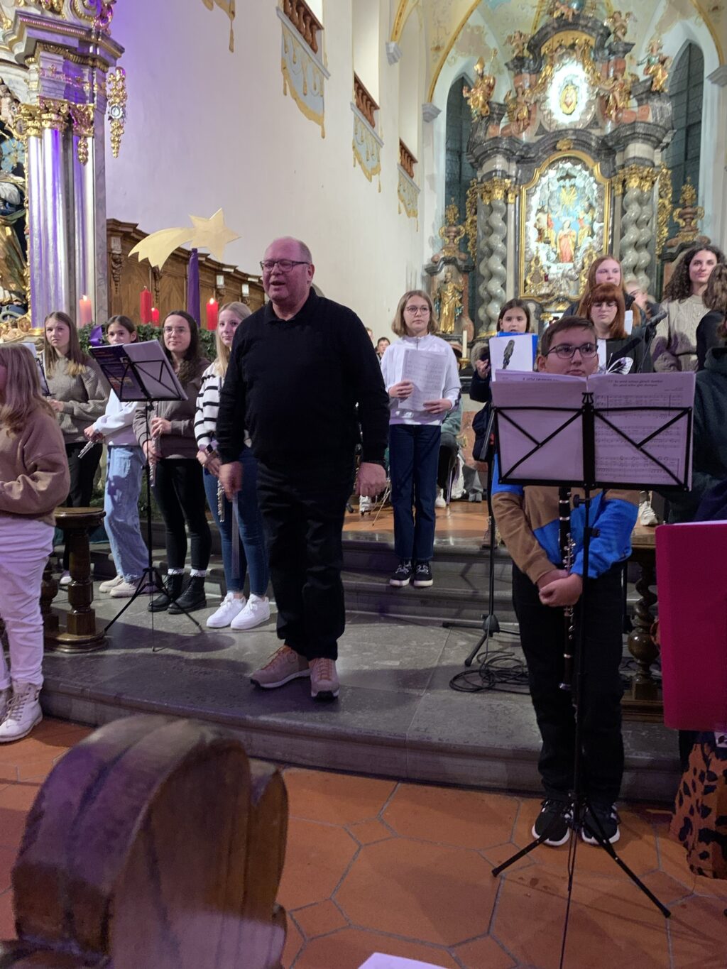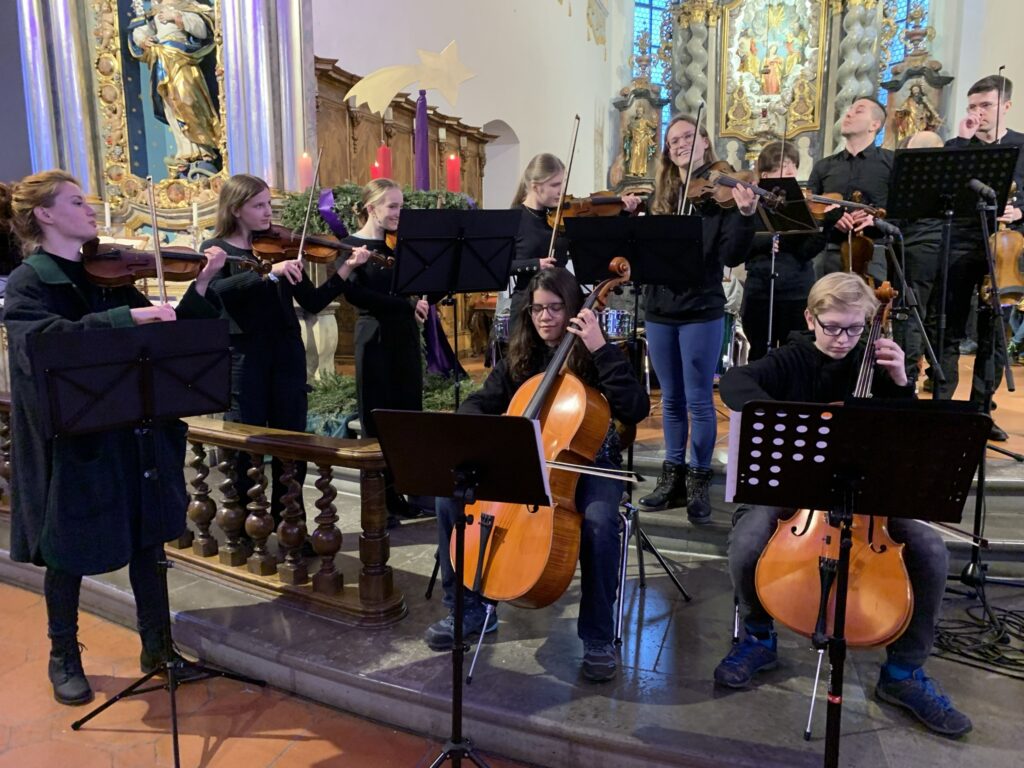 Bad Waldsee – Fast 100 der gut 400 Jugendmusikschüler boten am vergangenen Sonntag (17.12.) unter der Leitung ihrer Lehrkräfte traditionelle, moderne und populäre Weihnachtsmelodien. Die herrlich hallende Akustik der barocken Stiftskirche St. Peter ist wie geschaffen für solch Herzen berührende Konzerte. Bis auf den letzten Platz füllten die Besucher das Gotteshaus. Das Konzert wurde wechselnd vor dem Altar, auf dem Hochaltar und auf der Empore gespielt.
