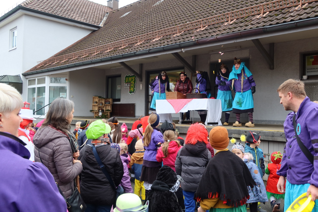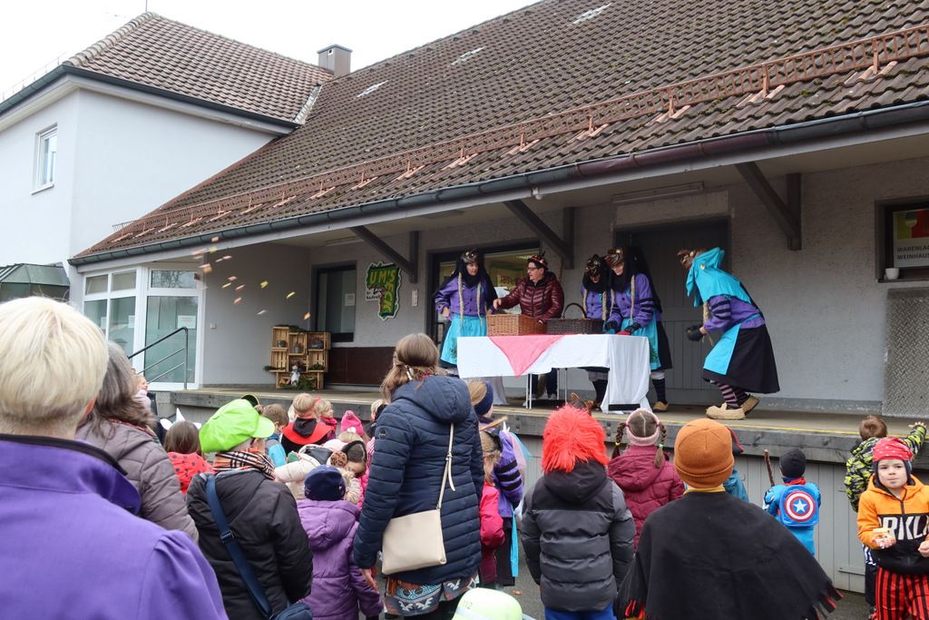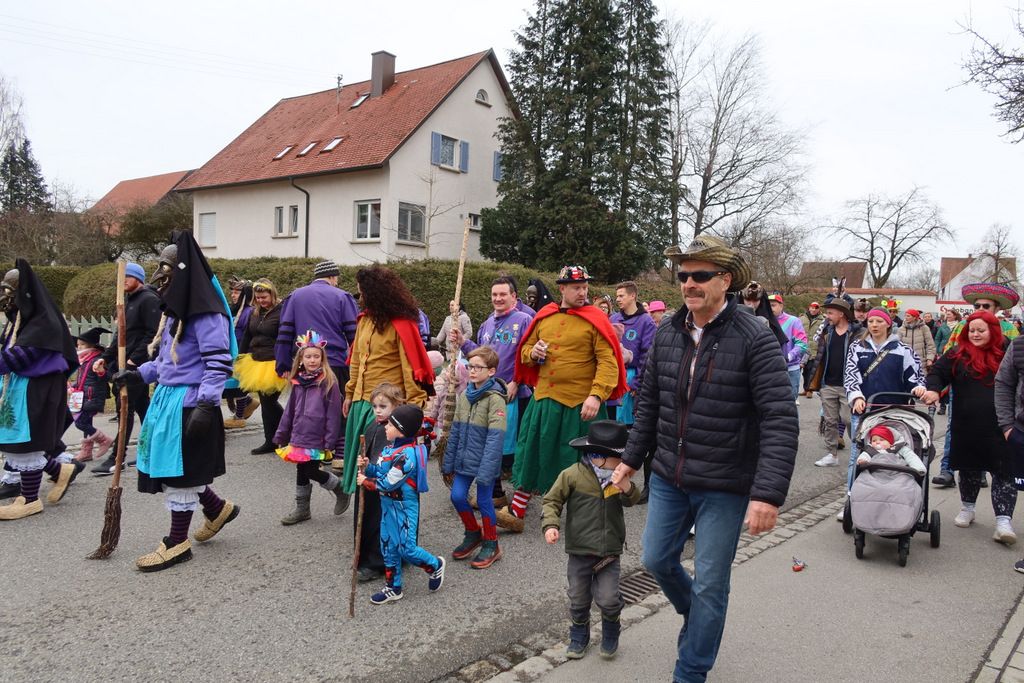 Haisterkirch – Das größte närrische Ereignis im Haistergau mit dem Kinderumzug am „ruaßigen Freitig“ wurde wie gewohnt beim Klosterhof gestartet. Ein Zwischenhalt bei der Bäckereifiliale Herrmann (Bad Waldsee) verspricht stets großzügigen Bonbonsegen. Dankenswerterweise sicherte die Polizei wieder den Umzugsweg.