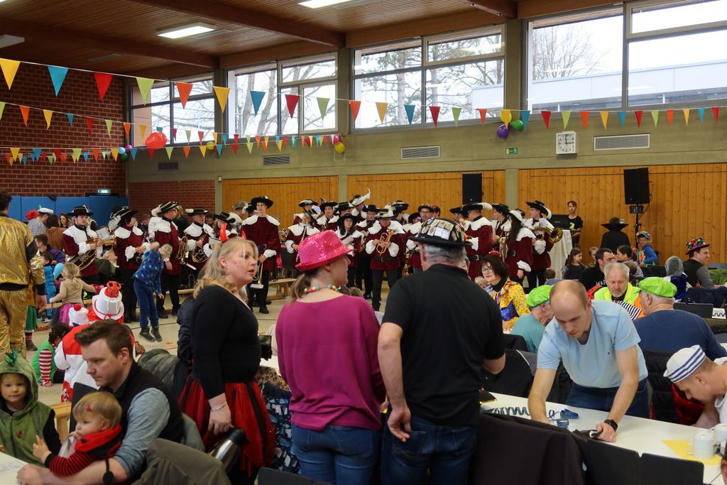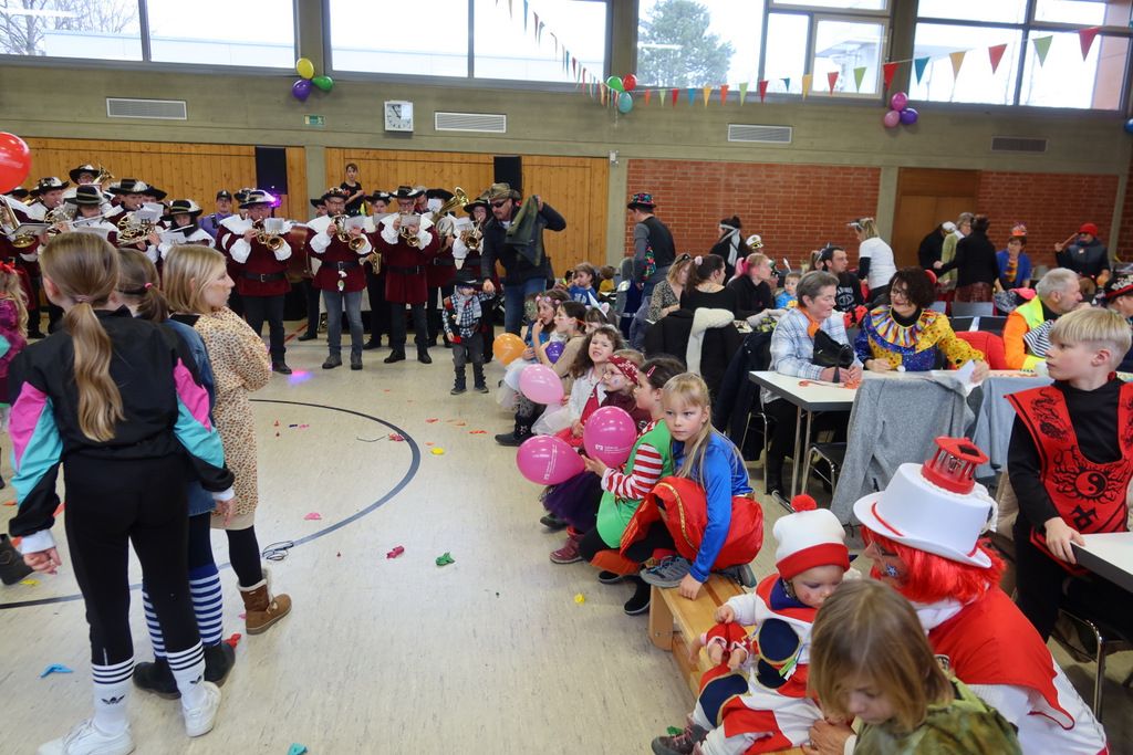 Super organisiert wird alles von einer Elterninitiative unter Leitung von Stefan Klesel und der Narrenzunft „Waldhexen“. Den Kindern wird außergewöhnlich viel geboten. Die Haisterkircher Musikkapelle sorgt nicht nur für die musikalische Begleitung beim Umzug, sondern danach auch mit schwungvollen, närrischen Klängen in der Halle für beste Unterhaltung. In der Hallenmitte war eine Fläche zum Spielen und Toben reserviert worden. Die Kinder, sogar die allerjüngsten, erfreuten sich am Balancieren, Kriechen, Klettern, Springen oder auch am Rutschen. Eine lange Theke mit einem von Eltern gespendeten, umfangreichen, leckeren Torten- und Kuchenangebot passte zum angebotenen Kaffee für die Erwachsenen. Traditionell lockt später ein Vesperangebot an die Theke. Alles gab es zu familienfreundlichen Preisen.