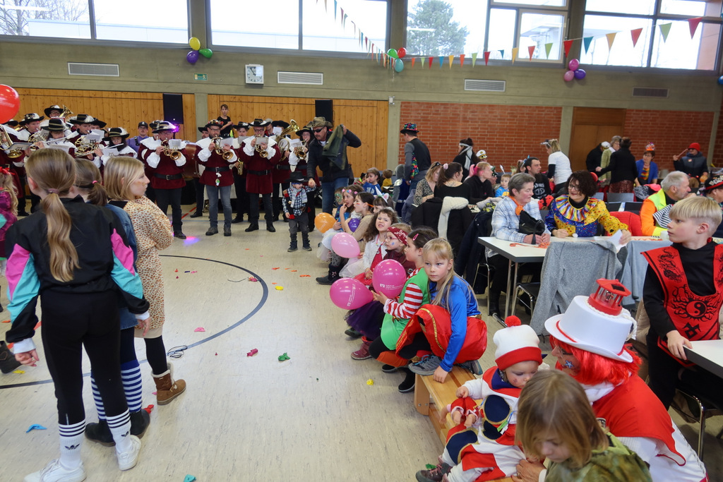 Nach dem Umzug spielte sich das fasnachtliche Geschehen in der proppenvoll besetzten Halle ab. Der fröhlich-närrische Nachmittag für Jung und Alt lockte wie seit Jahren schon nicht nur die Haisterkircher Kinder, sondern auch viele aus der Gesamtstadt an.