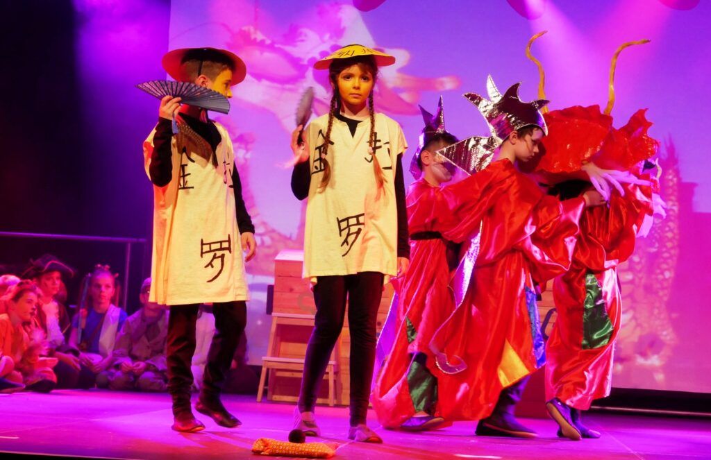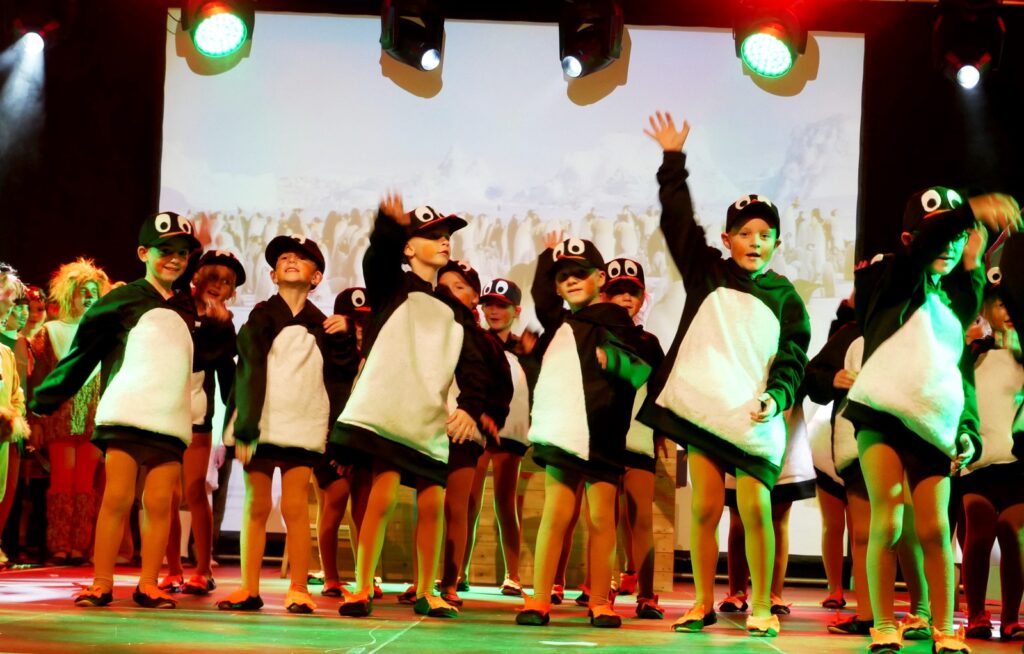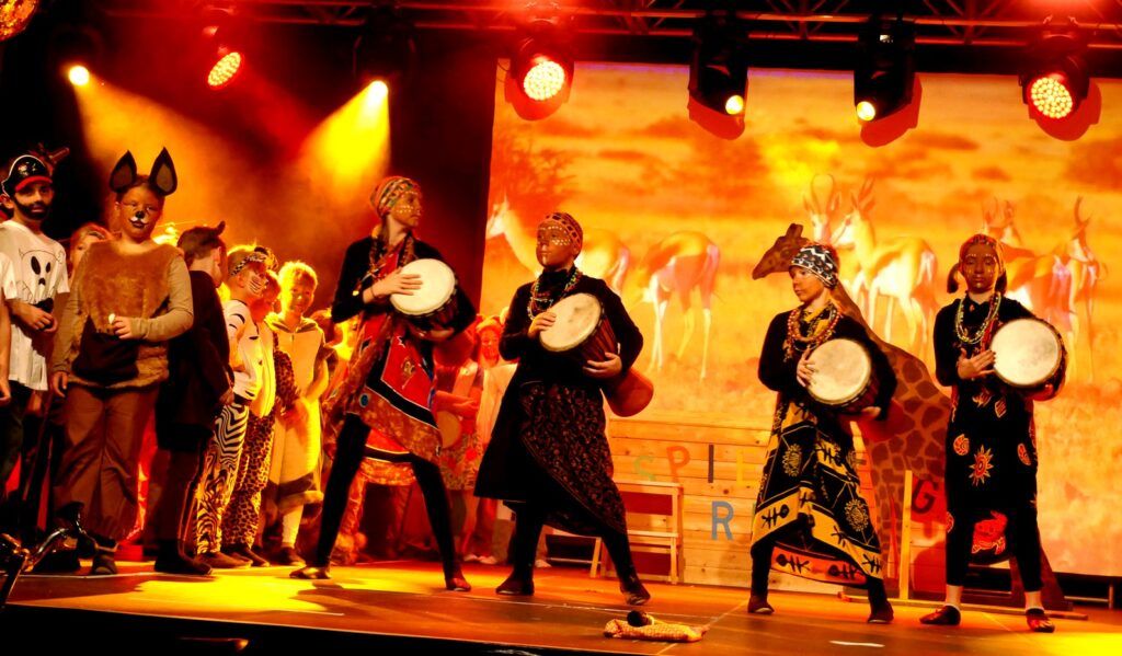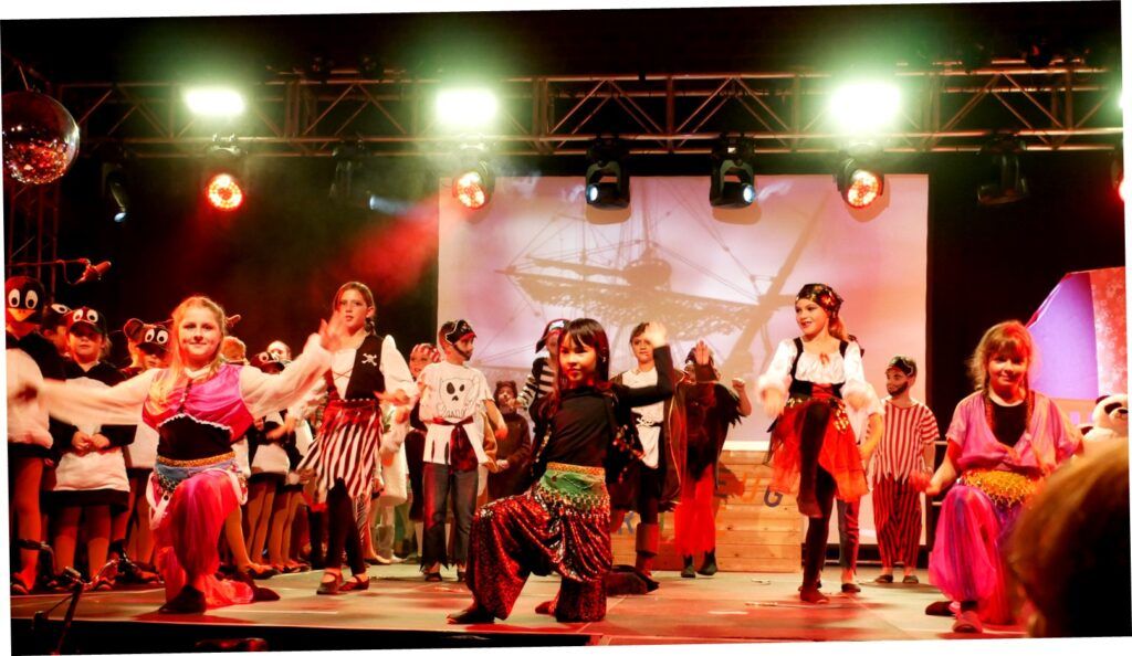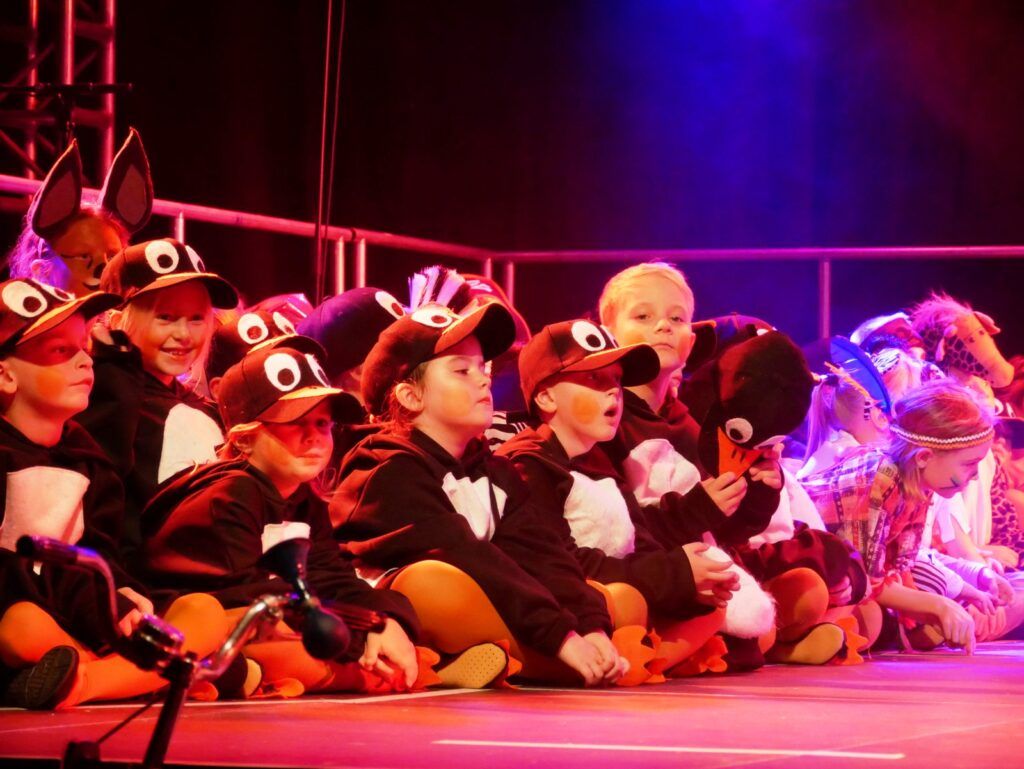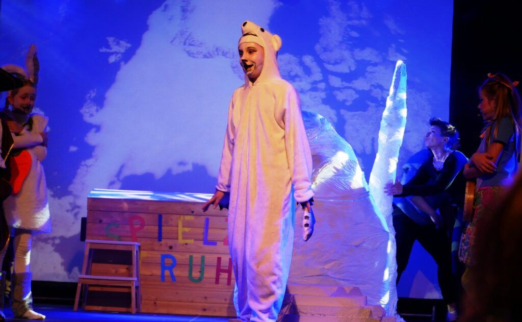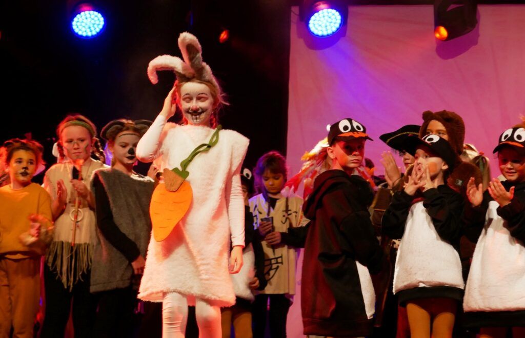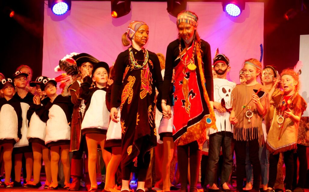 Alle Kinder der Klassenstufe 1-4 und dazu auch Schülerinnen und Schüler, die jetzt 5. Klassen anderer Schularten besuchen, gehörten zu den Akteuren auf der Bühne. Die monatelangen Proben im vergangenen Schuljahr unter der Regie von Schulleiterin Angelika Zimmermann haben sich gelohnt, denn all die hervorragend gespielten Szenen, die Tänze und Lieder der jungen Akteure haben ihre Wirkung auf das Publikum (insgesamt etwa 700 Besucherinnen und Besucher) nicht verfehlt.