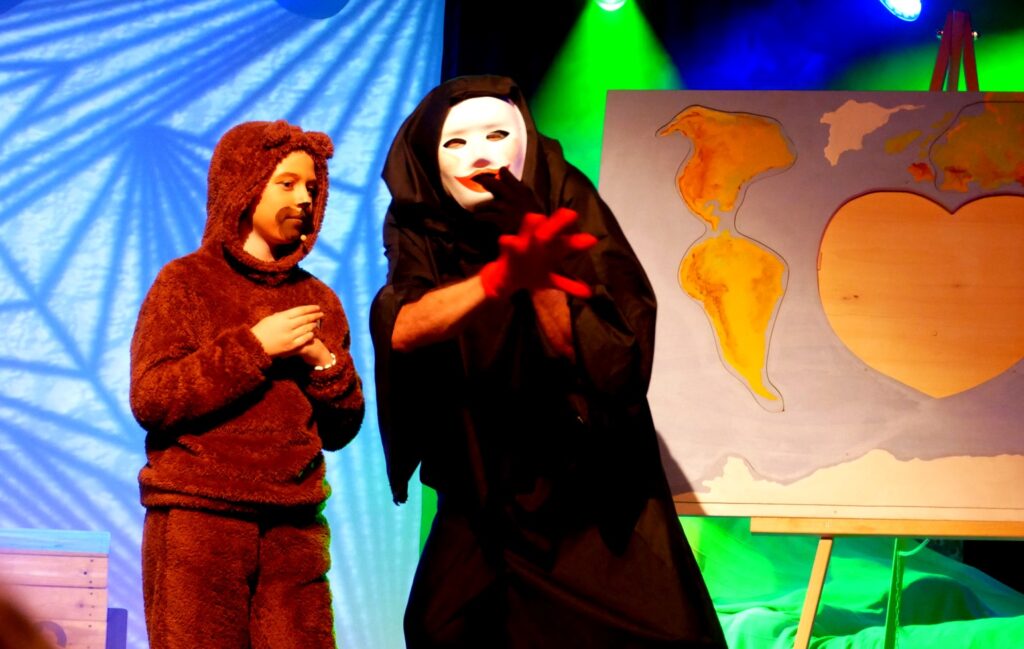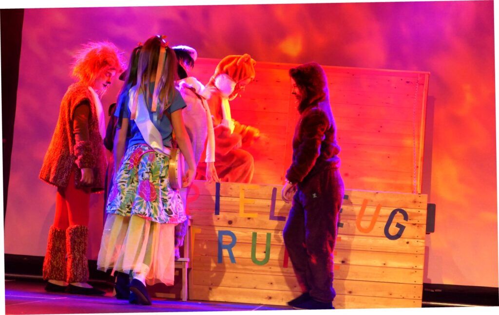 Der tiefschwarz gekleidete „Hass“ (Hans Ehinger) verbreitete auf beängstigende Art nochmals Schrecken. Doch die Truhe-Bewohner ließen sich nicht beirren: „Wir brauchen keine miesen Tricks, um unsere Truhe wieder zu öffnen“, bekundeten diese, und ergatterten in Afrika bei den Massai das letzte Puzzleteil. So nahm die lange Reise ein gutes Ende mit der Entdeckung, dass immer, wenn Zusammenhalt und Respekt voreinander in den Herzen ist, echte Freundschaft entstehen kann.