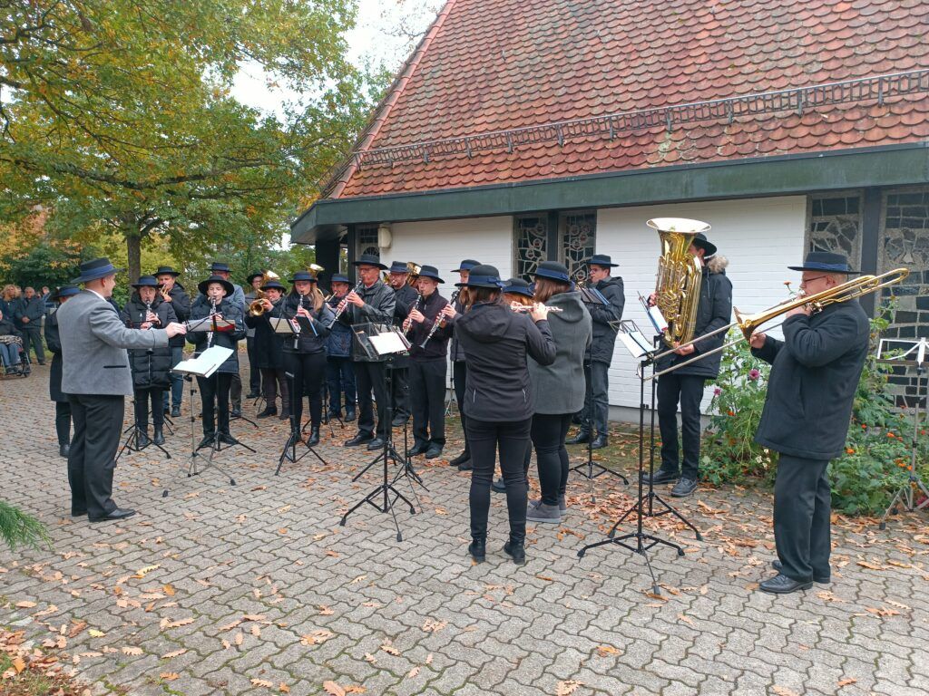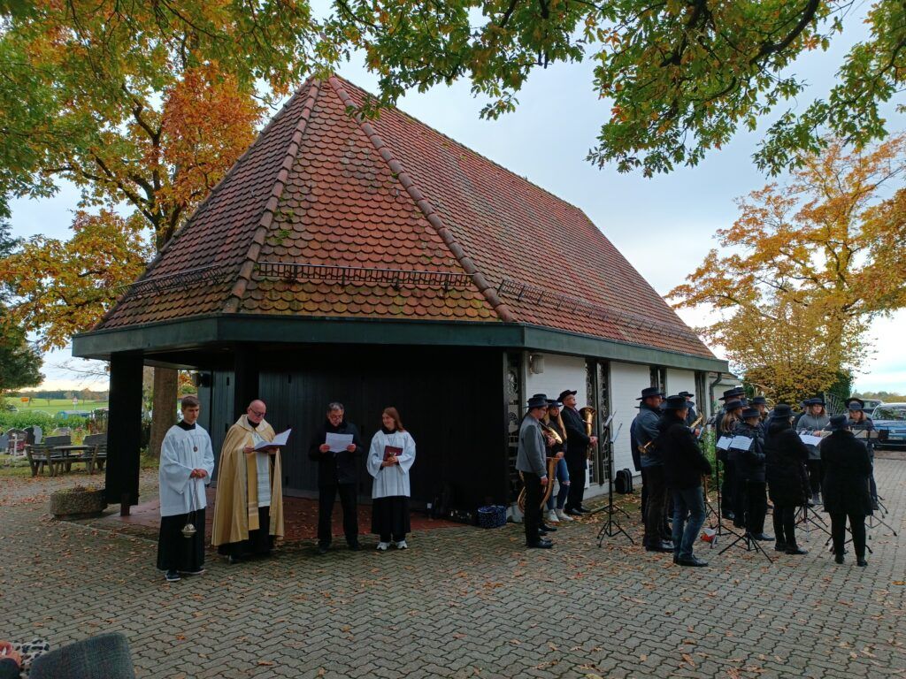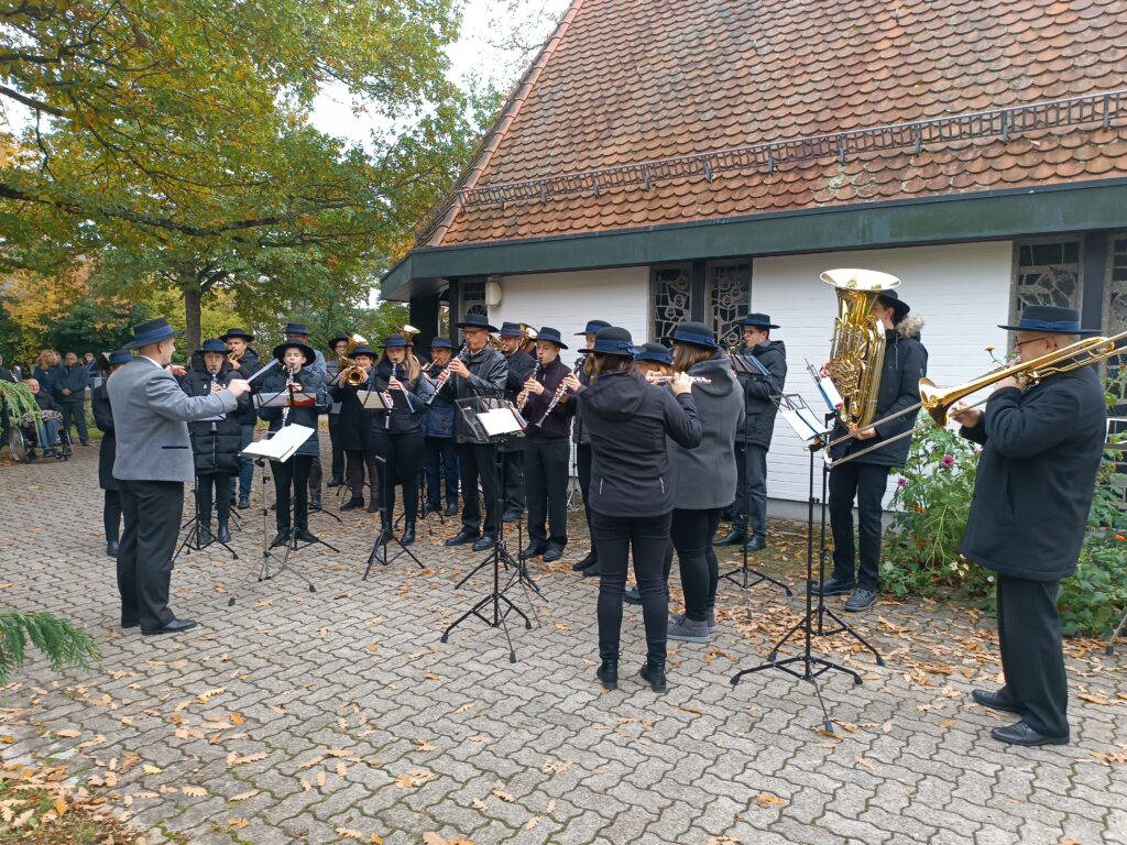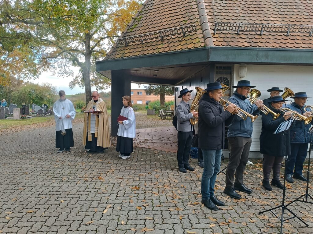 Dann wurden die Namen der im vergangenen Jahr verstorbenen Gemeindemitglieder vorgetragen, es waren neun Frauen und 16 Männer sowie sieben Schwestern vom Kloster Reute. Die Gedenkfeier wurde von der Musikkapelle Reute-Gaisbeuren unter dem Dirigat von Daniel Maucher mit Liedern und Chorälen umrahmt. Zum Abschluss ging Pater Hubert durch die Reihen des Friedhofs und besprengte die Gräber mit Weihwasser.