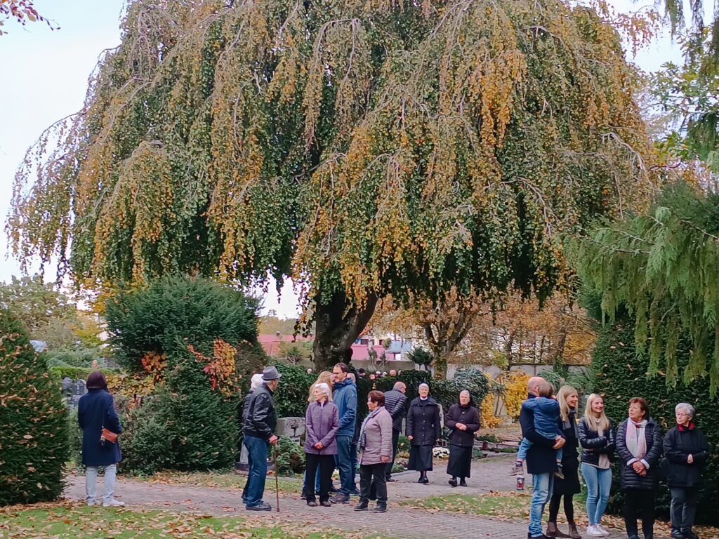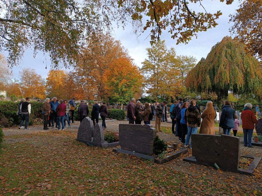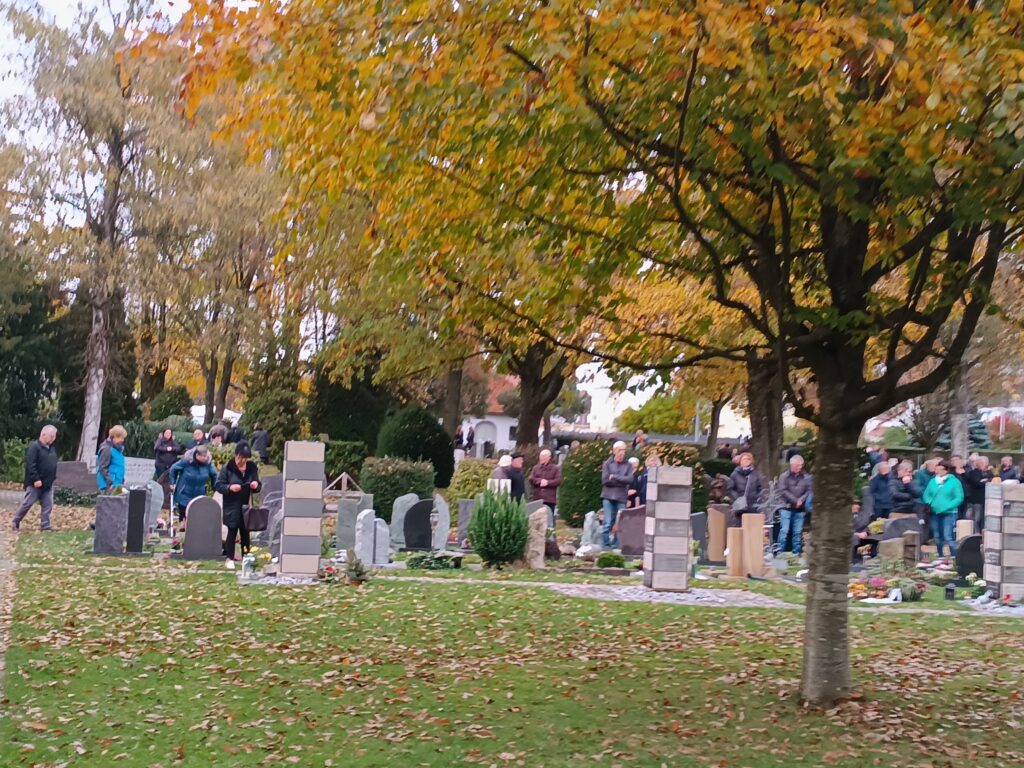 Nachmittags versammelten sich einige hundert Personen auf dem Friedhof. Bei angenehmer Herbsttemperatur kamen hier die vielen liebevoll geschmückten Grabstätten zur besonderen Geltung. Pater Hubert dankte den Angehörigen für ihr Gedenken an die Verstorbenen das ganze Jahr über, insbesondere aber am Festtag Allerheiligen. „Unsere lieben Toten sind uns etwas wert, auch Gott sind sie etwas wert“, so der Geistliche. Und weiter: „Was trägt mich, wenn es mir den Boden unter den Füßen wegnimmt?“