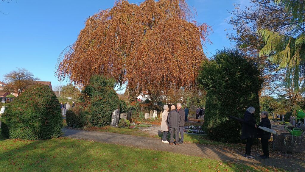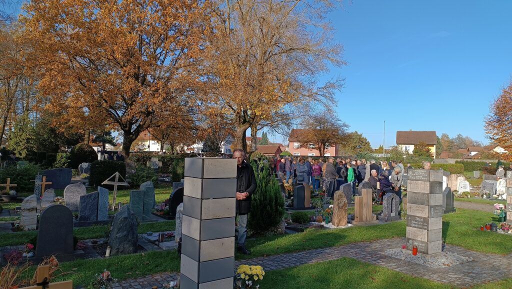 Nachmittags versammelten sich einige hundert Personen auf dem Friedhof in Reute. Bei herrlichem Sonnenschein kamen hier die vielen liebevoll geschmückten Grabstätten zur besonderen Geltung. Pater Hubert Vogel dankte den Angehörigen für ihr Gedenken das ganze Jahr über, insbesondere aber am Festtag Allerheiligen und auch Allerseelen: „Behalten wir unsere Toten in unseren Herzen. An solchen Gedenktage kommen doch ganz viele Familien zusammen, lassen wir hier unsere Verstorbenen wieder unter uns lebendig sein“.