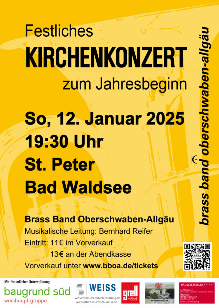 Kirchenkonzert mit der Brassband Oberschwaben-Allgäu am Sonntag, 12. Januar
