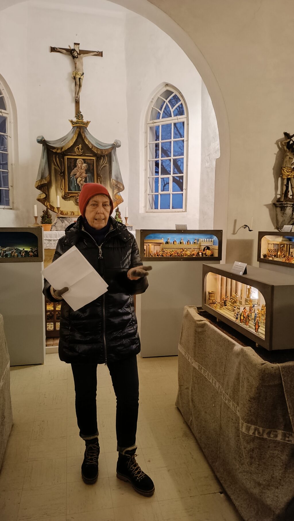 Pfarrer Stefan Werner gelang es, über einen Cousin diese Ausstellung nach Kümmerazhofen zu lotsen. Bei seiner Begrüßung freute er sich auch über die Anwesenheit von Schwestern des Klosters Reute sowie von Ortsvorsteher Achim Strobel und auch der Ortsvorsteherin von Haisterkirch, Rosa Eisele. Die Waldseer Diplom-Restauratorin Brigitte Hecht-Lang verstand es bestens, die Herkunft der 176 Krippenfiguren zu erläutern: Franz-Joseph Sohn aus Kümmerazhofen hatte die zündende Idee, mit Holzmodeln zu arbeiten. Zwischen Reute und Kümmerazhofen soll es damals eine Tongrube gegeben haben. Somit war das Grundmaterial für die Herstellung von vielerlei Figürchen schnell beschafft. Er fertigte so auch Gute-Beth-Figuren von einer Größe von 6 bis 24 Zentimetern.