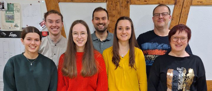 Die neue Vorstandschaft des Fördervereins. Von links nach rechts sind folgende Personen zu sehen: Lena Hepp (Beisitzerin), Matthias Preiß (Stellvertretender Vorsitzender), Caroline Kopf (Beisitzerin), Daniel Schmid (Beisitzer), Kristina Hepp (Erste Vorsitzende und Jugendleiterin), Thomas Lemmle (Kassier) und Margit Spehn (Schriftführerin). Foto: MVMF