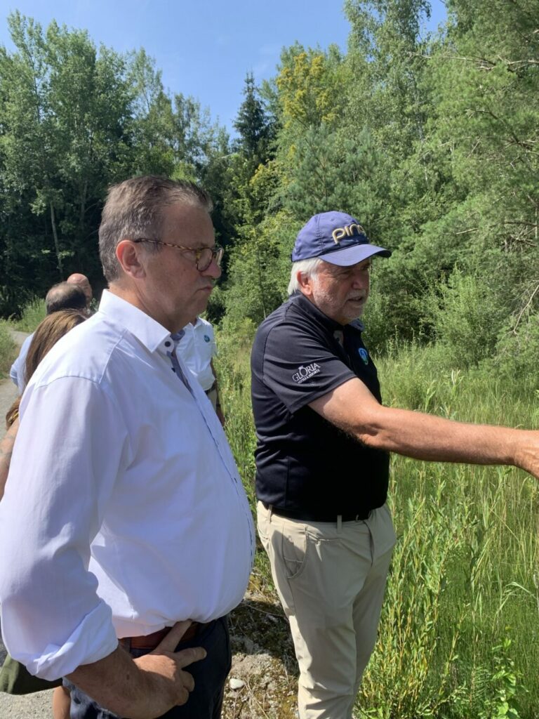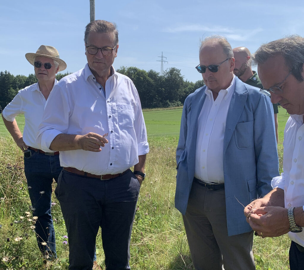 Bad Waldsee – In Begleitung der Landtagsabgeordneten Raimund Haser und Klaus Burger traf sich Minister Hauk mit hochrangigen Vertretern des baden-württembergischen Golfsports, um sich über die umfangreichen ökologischen Anstrengungen mehrerer Golfanlagen im Land zu informieren. Gesprächspartner waren S.D. Johannes Fürst zu Waldburg-Wolfegg und Waldsee, der Geschäftsführer des Fürstlichen Resorts Sascha M. Binoth, Otto Leibfritz, Präsident des baden-württembergischen Golfverbandes (BWGV), Dennis Schwarz, Head-Greenkeeper des Resorts und die Marketingmanagerin des Resorts Claudia Binoth. Hauptgesprächsthema war das Ziel Wiederherstellung der Biodiversität in den Anlagen.