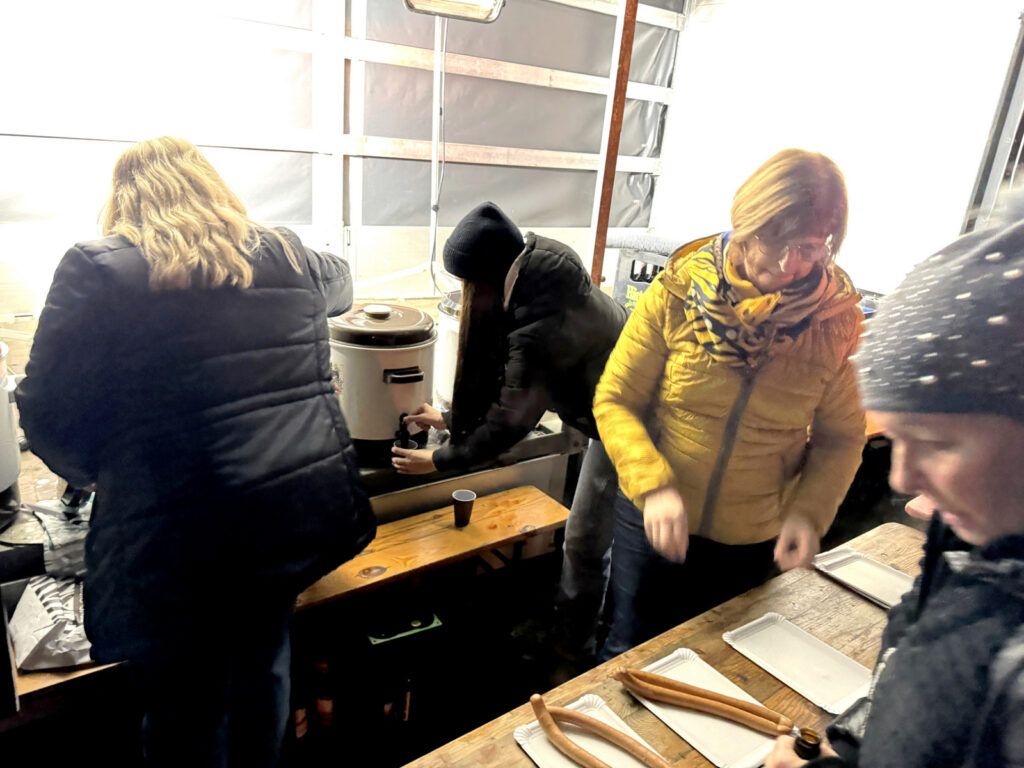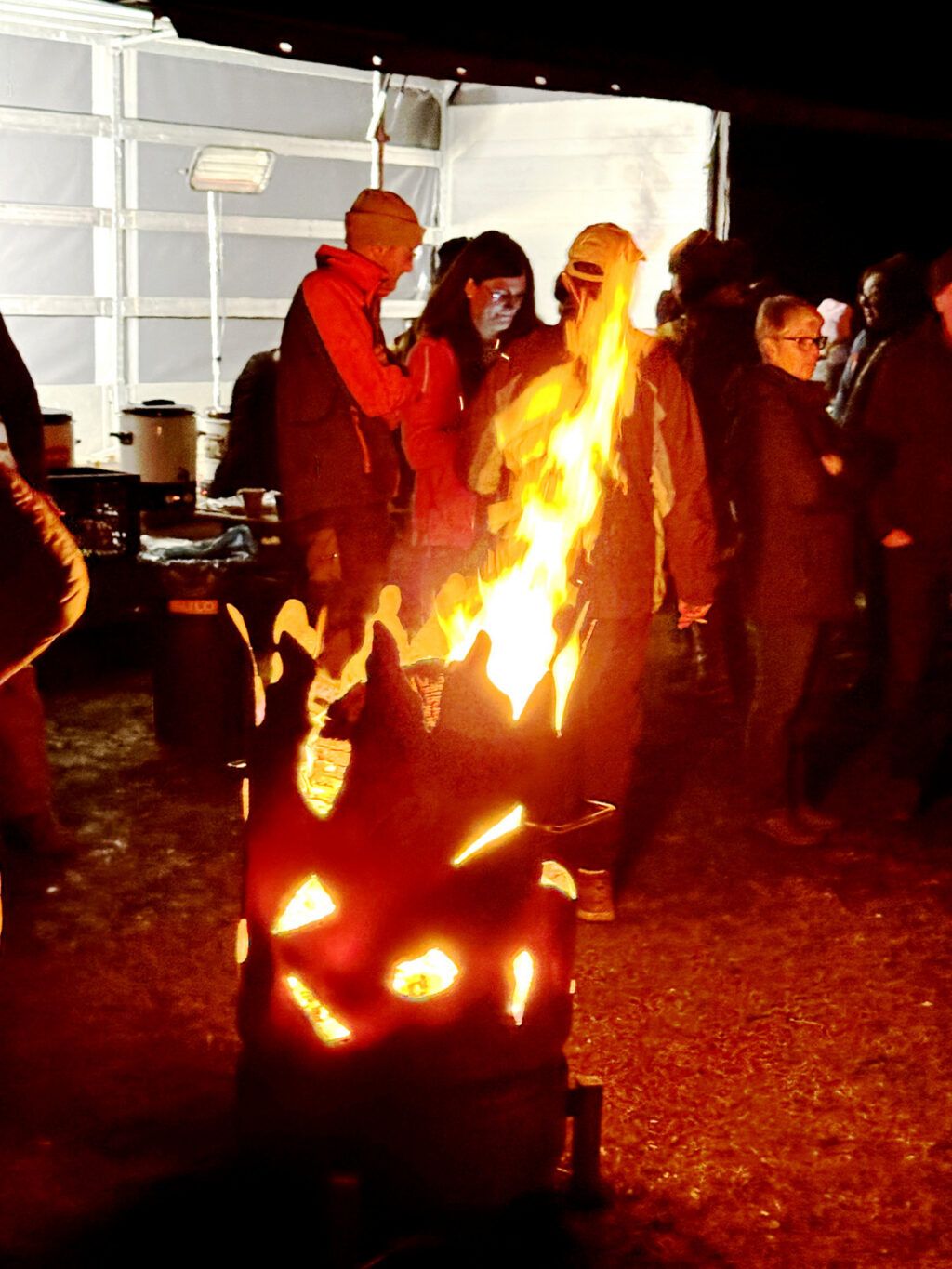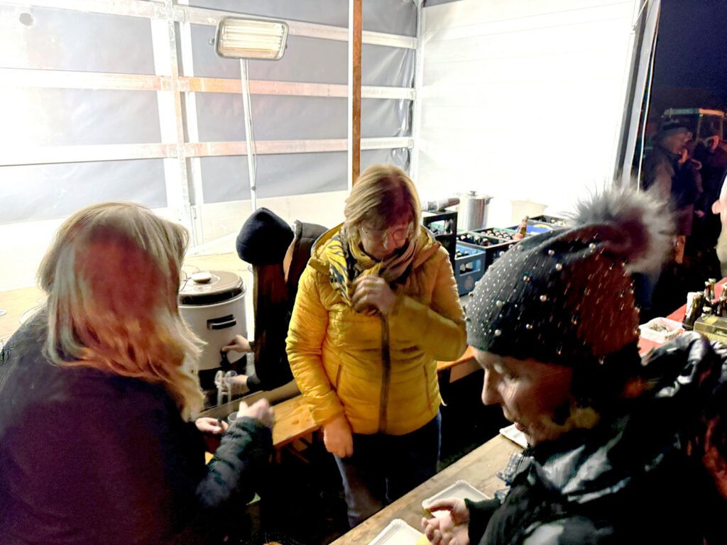 Bereits ab 17.30 Uhr kamen die ersten von geschätzten 200 Besuchern bei inzwischen trockener Witterung. Die Gekommenen waren in gespannter Erwartung auf das Entzünden des Funkenfeuers. Marion Hepp und Lollo Fehr sorgten am Verpflegungsstand der Oldtimerfreunde Michelwinnaden mit kalten und heißen Getränken sowie Saitenwürsten mit Wecken für eine gerne angenommene und allseits gelobte Bewirtung der Besucherschar.