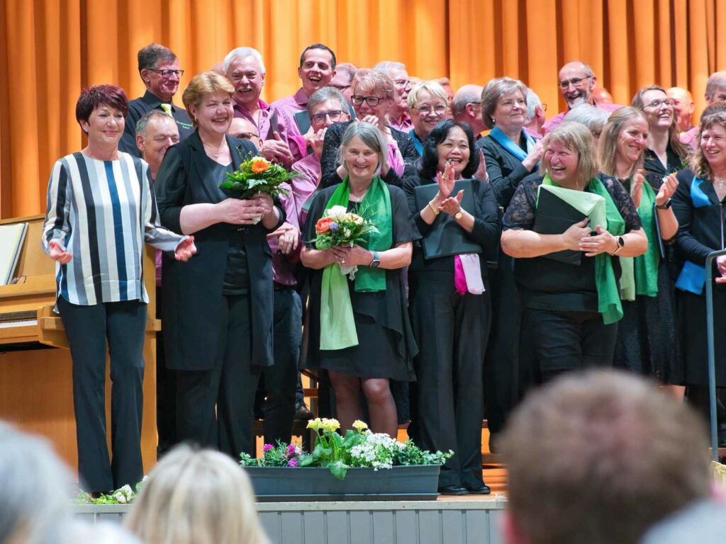 Mit den Worten „Danke für die Musik“ aus dem ABBA-Hit „Thank you for the music“ verabschiedete sich passend die Chorgemeinschaft Taldorf von ihren Gästen. Zu einem gemeinsamen Abschluss wurden dann alle Sängerinnen und Sänger auf die Bühne gebeten. Dafür wurde das Lied „Tulpen aus Amsterdam“ ausgewählt und es füllte ein Chor mit über siebzig Stimmen die Bühne und musikalisch den Raum. Auch hier war es nochmals gelungen, das Publikum zu begeistern und die Sängerinnen und Sänger wurden durch überschwänglichen Applaus belohnt für die gekonnten Darbietungen.