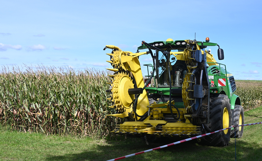 Das Ungetüm warf seinen Maschine an und verschwand hinter der Maiswand. Nur noch der Ausleger ragte über die Pflanzen und goss in einem nicht abreißenden Strom das gehäckselte Gut auf den nebenher fahrenden Ladewagen.