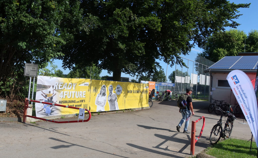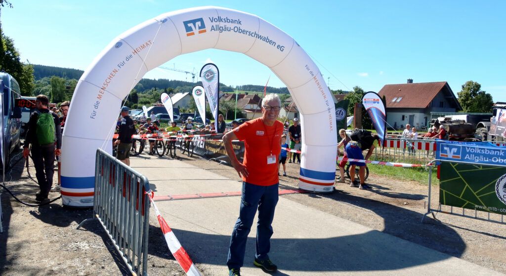Rund um Start und Ziel waren etliche Werbetafeln aufgestellt, die aufzeigten, welche Unternehmen (Sponsoren) das Ganze unterstützen. Hauptsponsor ist die Volksbank Allgäu-Oberschwaben. Extra zum Start des Hauptrennens um 12.00 Uhr war Regionalmarktdirektor Anton Sproll von der VBAO gekommen. Er konnte sich davon überzeugen, dass bei dem sonnigen Wetter wiederum Cross-Country-Begeisterte aus ganz Oberschwaben und auch weiter entfernten Regionen gekommen waren.