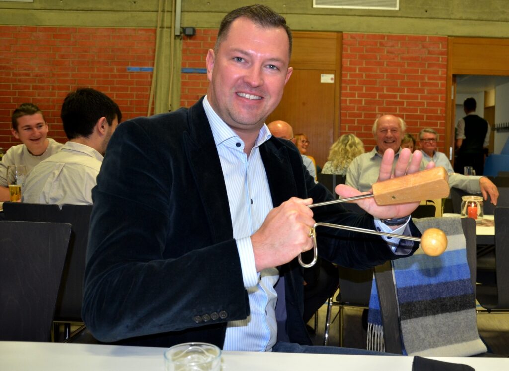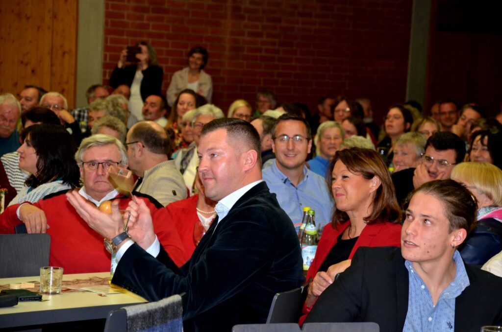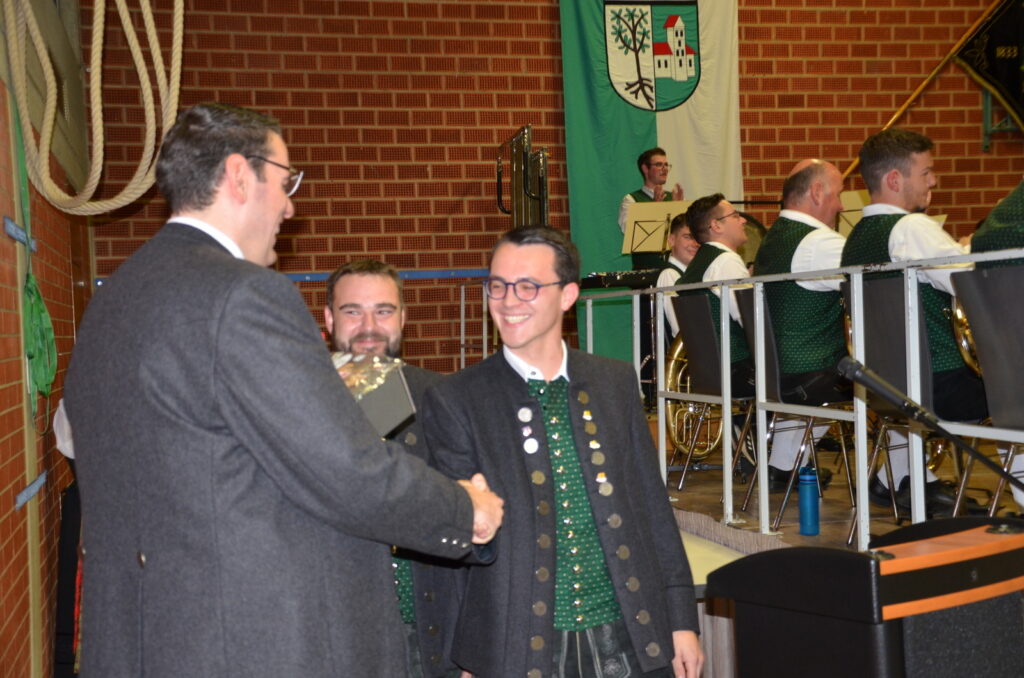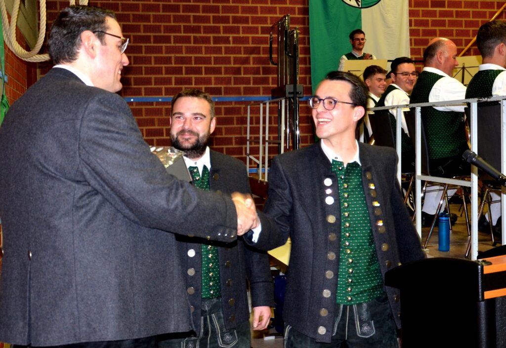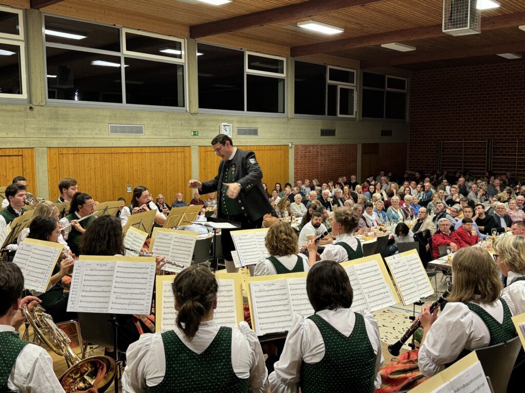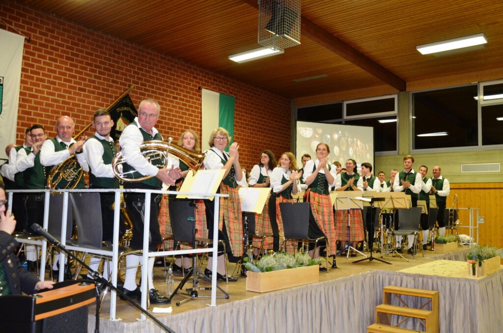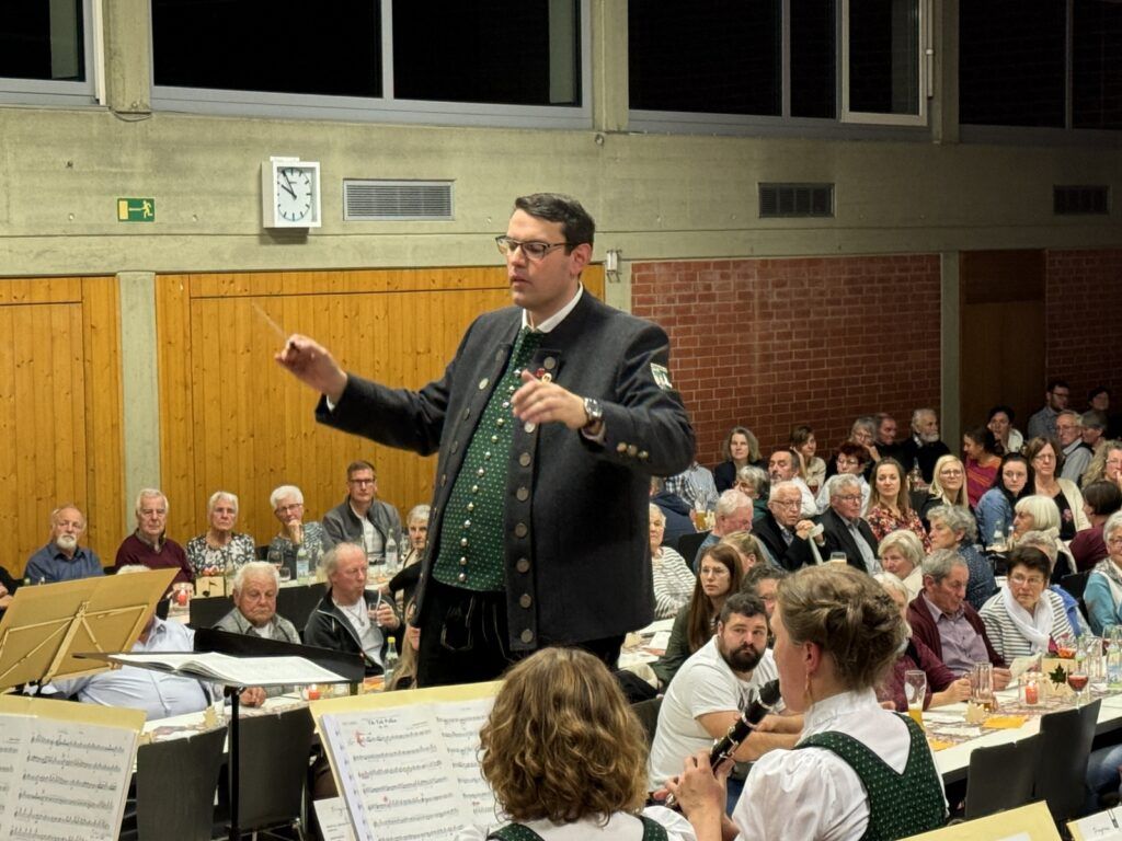 Mit Dankesworten, gerichtet an den Dirigenten, die Moderatorin, ans Service-Team in der Halle und in der Küche, an die so engagierten Musikerinnen und Musiker und an das so viel Applaus spendende Publikum sparte der Vorstandsvorsitzende Daniel Maucher nicht. Ein höchst zufriedener Klaus Wachter durfte Komplimente in Fülle entgegennehmen. Er und Verena Maucher wurden mit passenden Präsenten vom Verein dazu beschenkt.