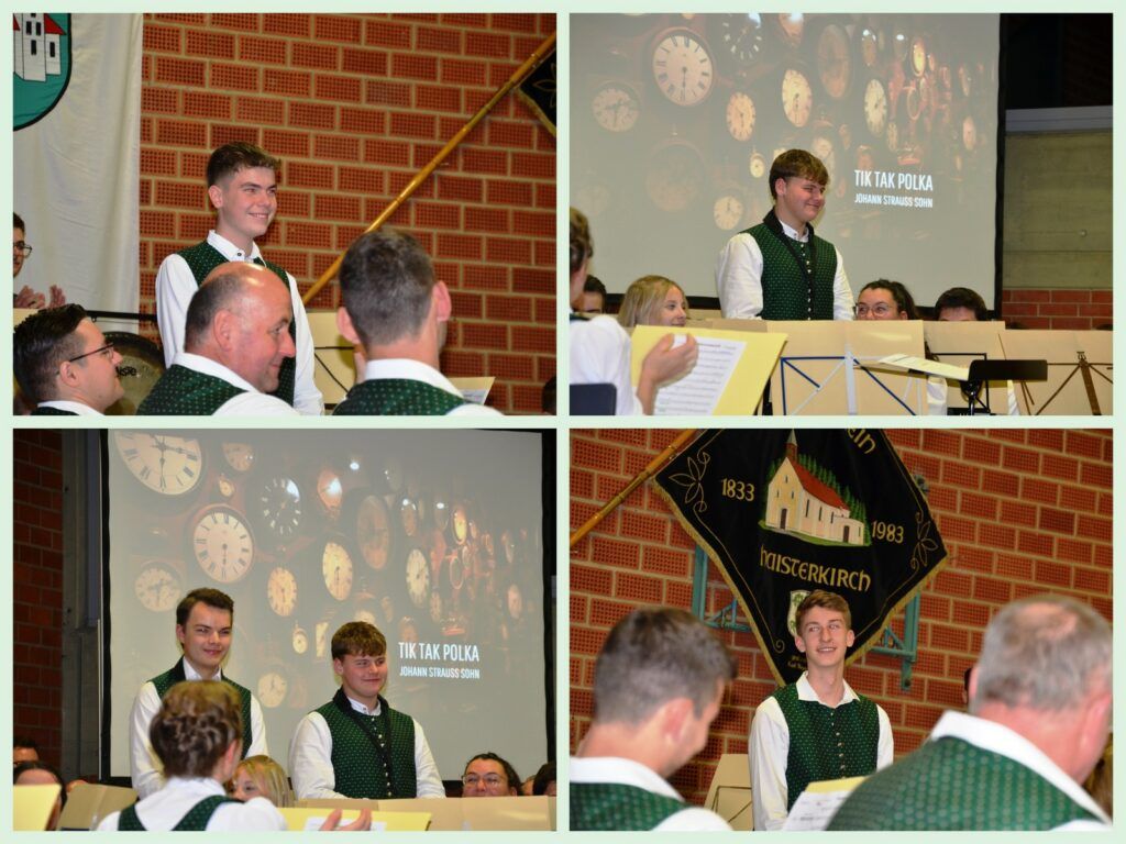 Vorgestellt wurden vier Jungmusikanten, die erstmals beim Jahreskonzert mitwirkten, so Markus Frick, Luis Kibler, Leo Krattenmacher und Tom Roth.