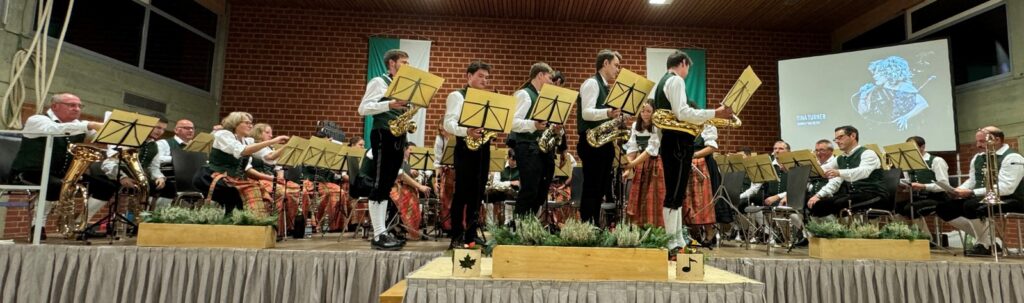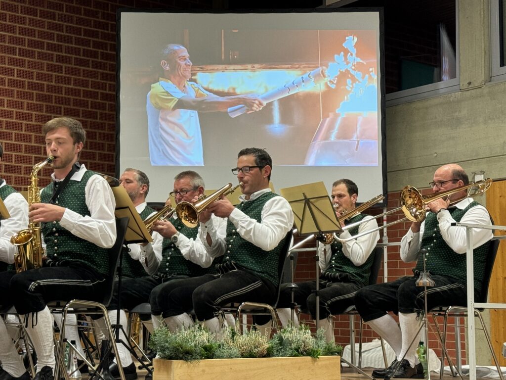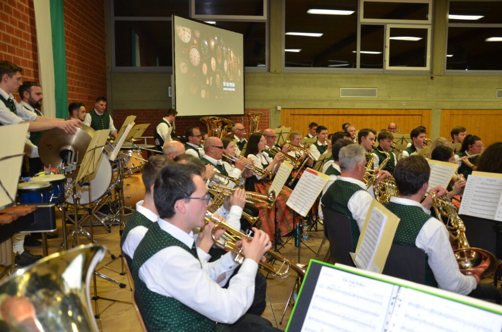 Den zweiten Teil des Konzerts eröffneten die Haisterkircher Musikerinnen und Musiker mit „Ein Leben lang“, bekannt geworden durch die „Fäaschtbänkler“ aus der Schweiz. Der Text dazu , angezeigt an der Leinwand, reizte auch zum Mitsingen.
