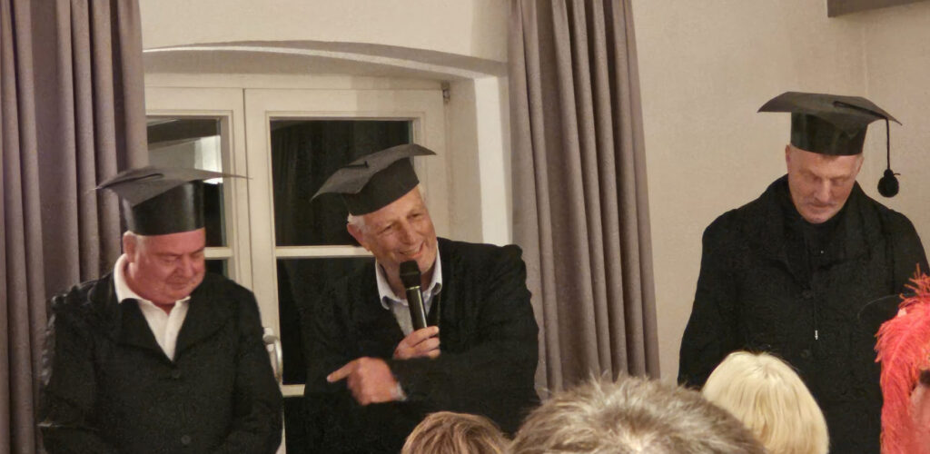 Reute – Pünktlich um 19.00 Uhr marschierte der Fanfarenzug Reute in den voll besetzten Saal im Gasthaus „Adler“ in Gaisbeuren ein. Die Reutener Narren waren voller Vorfreude auf die kommende Fasnet und machten entsprechend mit. Gildemeister Hermann Sommer war sehr erfreut über die zahlreich anwesenden Narren.