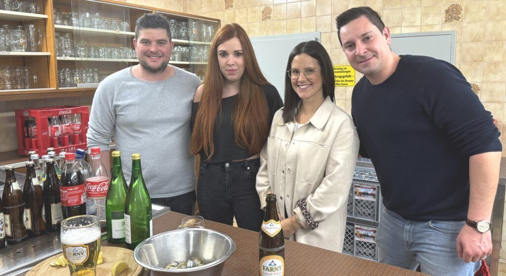 Auch an der Getränketheke wurde man schnell bedient. Das Team Walter Hampp, Carmen Schmidt, Lena Gronmayer, Martin Bosch (Foto von links) hatte alle Hände voll zu tun, die verschiedensten Getränke, die Christian Staiger besorgt hatte, wunschgemäß einzuschenken.