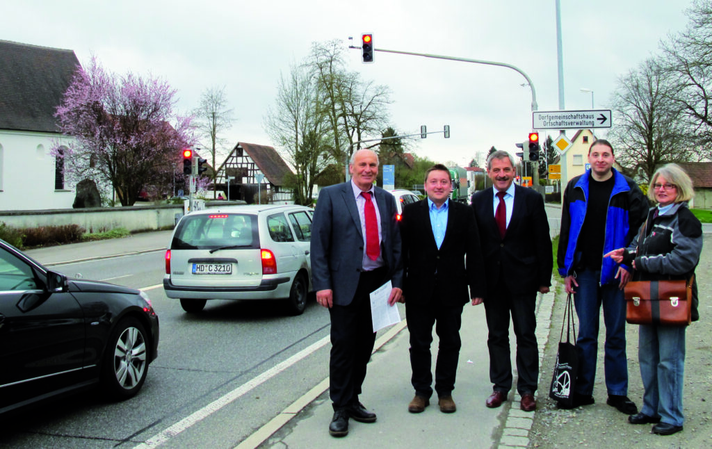 Ortstermin mit dem damaligen CDU-Bundestagsabgeordneten Waldemar Westermayer am 17. April 2015. Das Bild zeigt von links Westermayer, Ortsvorsteher Achim Strobel, Bürgermeister Roland Weinschenk und die örtlichen Aktivisten Franz Fischer und Annette Uhlenbrock. Ein wichtiges Fanal in der Amtszeit von Bürgermeister Weinschenk war die „Bad Waldseer Erklärung“ vom 18. Februar 2011. Foto: Gerhard Reischmann