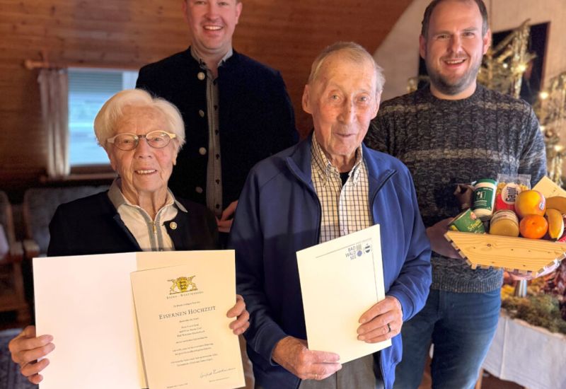 Bad Waldsee – Das seltene Fest der Eisernen Hochzeit haben am 7. Januar Maria und Franz Graf aus Bäuerle gefeiert. Zu diesem Ehrentag besuchten Oberbürgermeister Matthias Henne und Ortsvorsteher Matthias Covic die Jubilare, um ihnen im Namen der Stadt, des Ministerpräsidenten Winfried Kretschmann und auch ganz persönlich herzlich zu gratulieren.