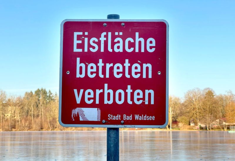 Bad Waldsee – Die Stadtverwaltung weist eindringlich darauf hin, dass das Betreten der dünnen Eisfläche auf dem Stadtsee aktuell lebensgefährlich ist!