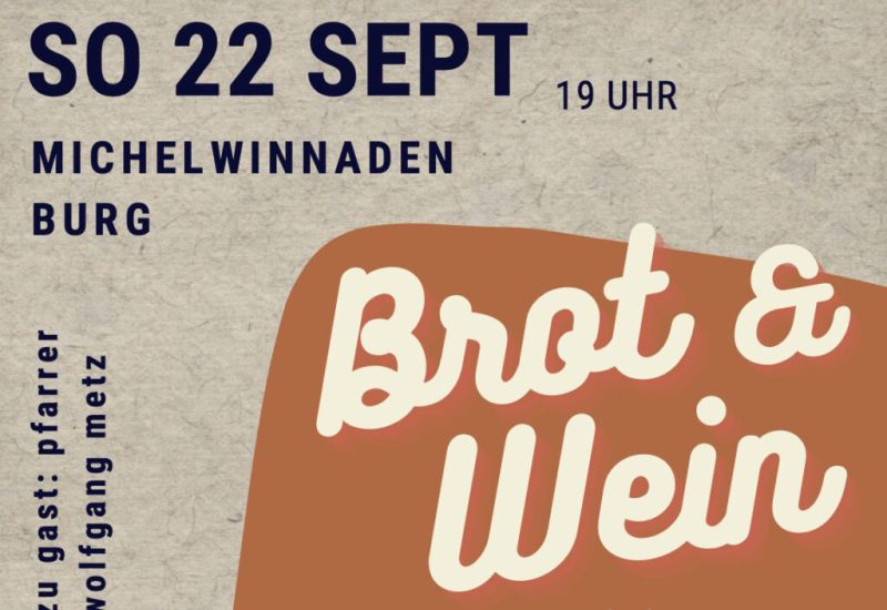 Michelwinnaden (rei) – Die von der Mobilen Jugendseelsorge, der Schwäbischen Bauernschule und der Seelsorgeeinheit Bad Waldsee initiierte Reihe Brot & Wein („Nahrung für Leib und Seele“) gastiert am 22. September in der Burg in Michelwinnaden. Zu Gast ist der bekannte Hochschulseelsorger und Rundfunkpfarrer Wolfgang Metz.