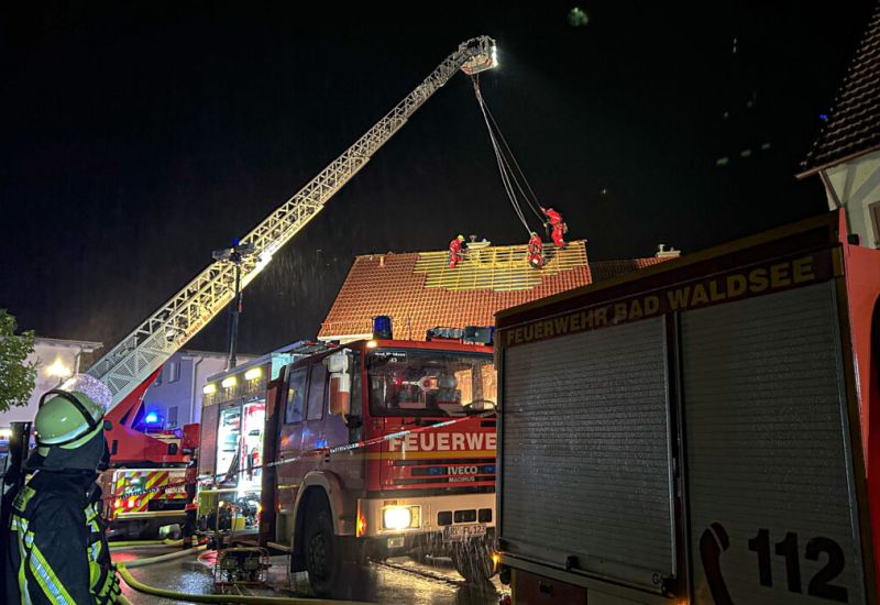 Bad Waldsee – Hoher Sachschaden entstand am Freitagabend bei einem Dachstuhlbrand in einer Doppelhaushälfte im Buchenweg in Bad Waldsee. Verletzt wurde niemand.
