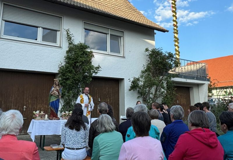 Osterhofen – Am 1. Mai fand in Osterhofen die erste Maiandacht der Kirchengemeinde Haisterkirch – unter freiem Himmel – direkt neben dem prachtvollen Osterhofener Maibaum statt.