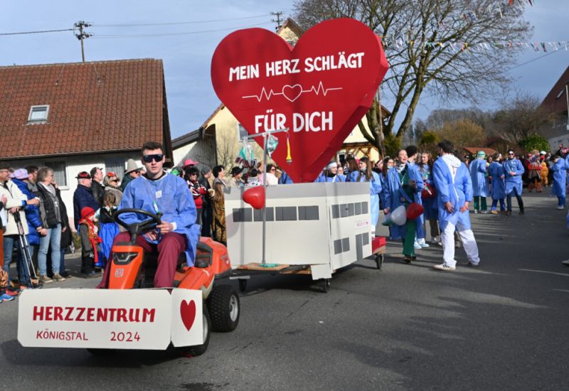 Mitttelurbach – Das Motto „60 Jahre Umzug im Königstal“ hat die Königstäler wieder mal zu Höchstleistungen animiert. Was da an Phantasie und liebevoll gestalteten Verkleidungen und Masken durchs Königstal defilierte, lässt manch Große Kreisstadt vor Neid erblassen. Nur ein Wermutstropfen: Zunftmeister Gere Frick konnte nicht mitspringen. Er musste den Umzug vom Rentnerbänkle aus anschauen, weil er grade schlecht zu Fuß ist. Unser Reporter Erre Linder ist mit Fahrrad und Kamera nach…