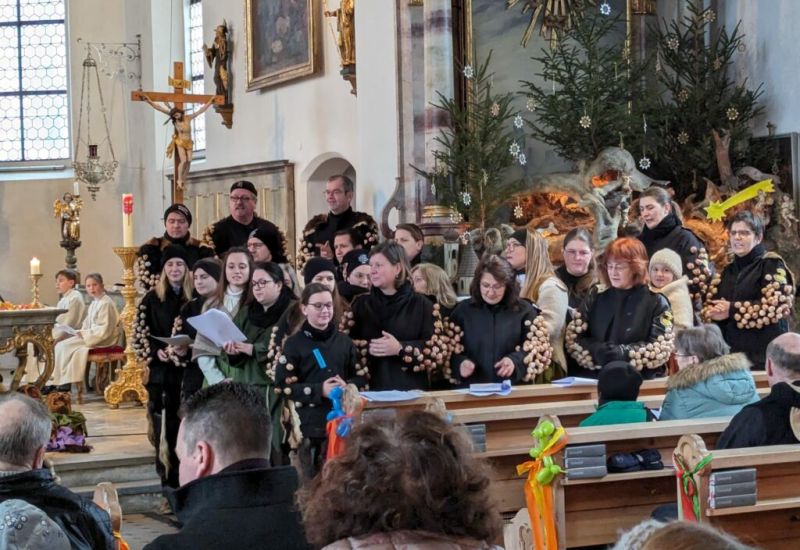 Michelwinnaden – In voller Montur haben die Michelwinnader Bulla Rätze am 14. Januar den Gottesdienst mitgestaltet. Eine sehr große Gruppe hatte passende Lieder einstudiert und zusammen mit den Kirchenbesuchern schwungvoll gesungen. Herr Pfarrer Bucher hat in seiner Predigt das Lachen immer wieder hervorgehoben. Lachen und lustig sein gehöre einfach zur Fasnet.