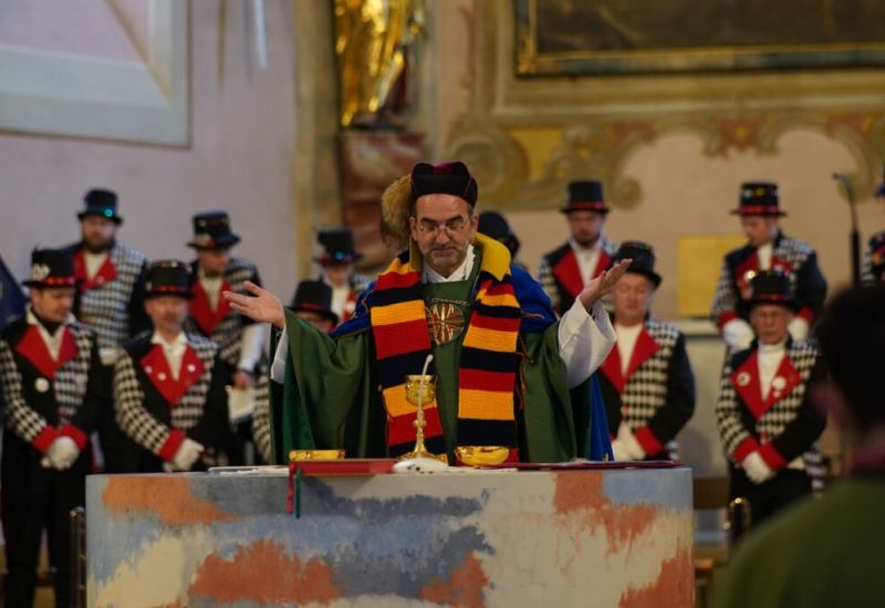 Narrengilde brachte Farbe und Musik in die Kirche nach Reute