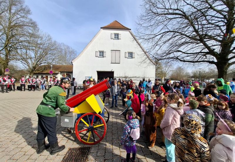 Reute – Am Samstag stand Reute ganz im Zeichen der jungen Narren. Der Kinderumzug startete pünktlich um 13.30 Uhr am Gasthaus „Stern“. Begleitet von zahlreichen verkleideten Narren zog der bunte Zug, angeführt vom Fanfarenzug, durch die Straßen bis zum Dorfplatz. Die Kinder hatten sichtlich Freude, wenn die Kanoniere mit ihrer Narrenrakete eine Menge Süßes und Konfetti in die Luft sprengten.