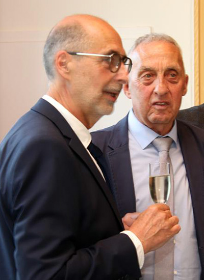 Moderator Barny Bitterwolf trank nach dem Festakt mit dem Geehrten ein Gläschen.