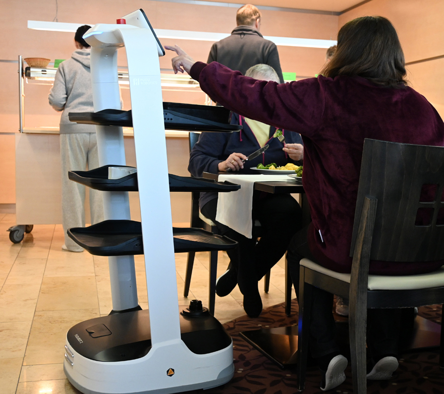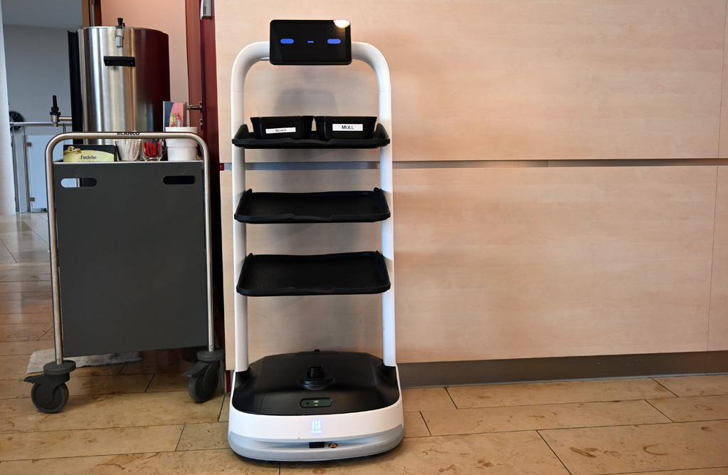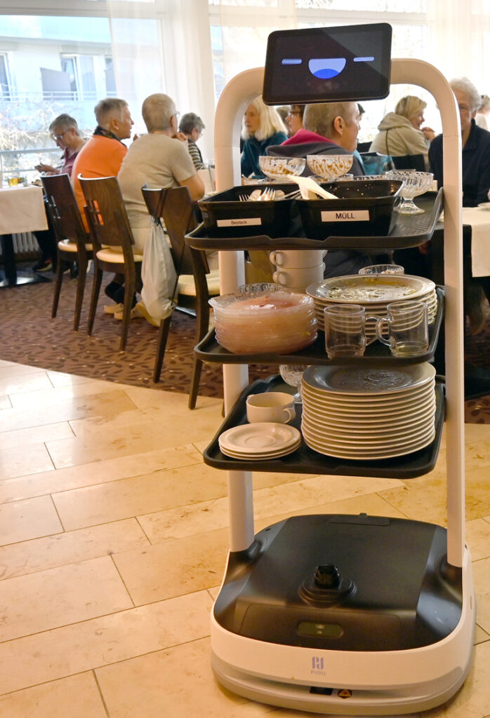 Beim Abräumen der Tische leistet „Paulchen“ wertvolle Unterstützung: Ist er vollständig beladen, bringt er das Geschirr in die Spülküche.