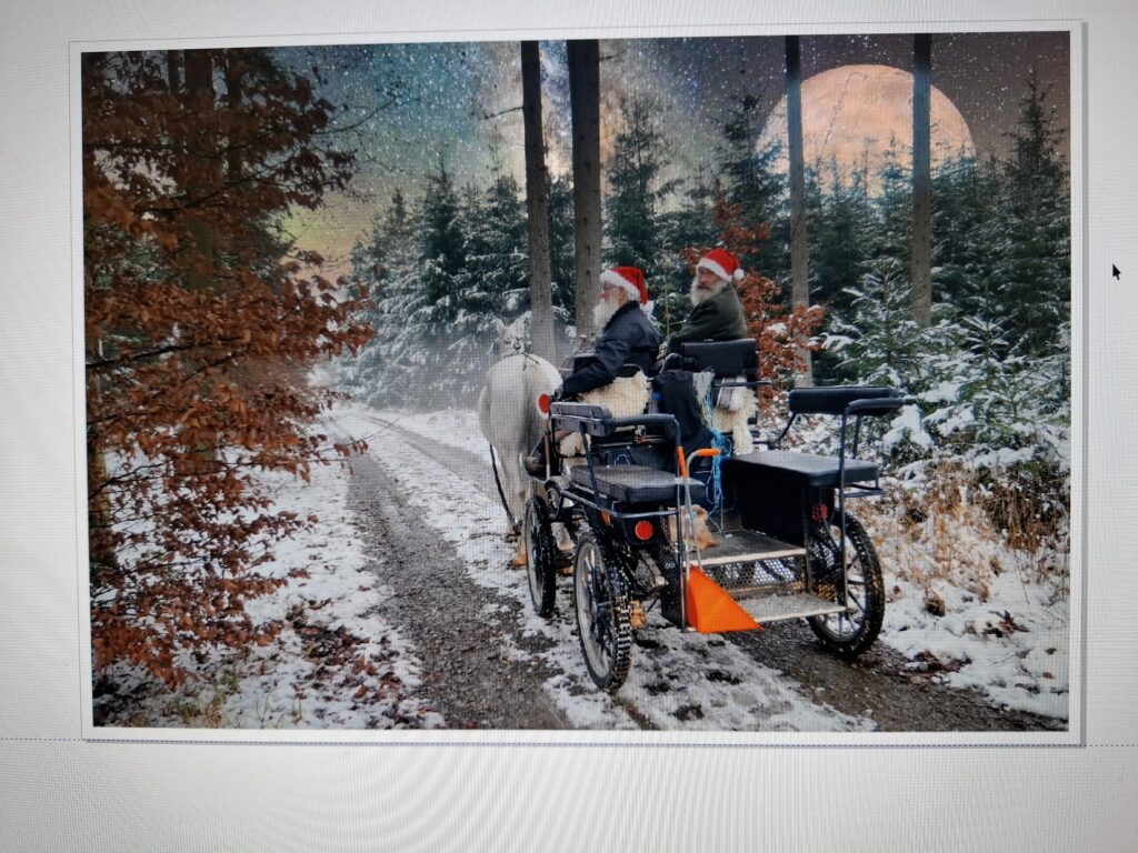 „Es war an einem zauberhaft schönen Vollmondabend, mit toll glänzendem Pferdegeschirr auf dem Rücken der superschön trabender Warmblutpferde“, schreibt er. „So kamen mein Beifahrer und ich wieder nach erfüllter, seelenheilender, winterlich-mondscheinbeleuchteter Fahrt in den Stall zurück.“