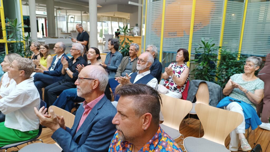 Die vier Waldseer, die an der Preisvergabe teilnahmen, nutzten den anschließenden Stehempfang zum Austausch mit Journalistinnen und Journalisten, sowie mit den anderen Vertreterinnen und Vertreter, über die ein Beitrag erstellt wurde.