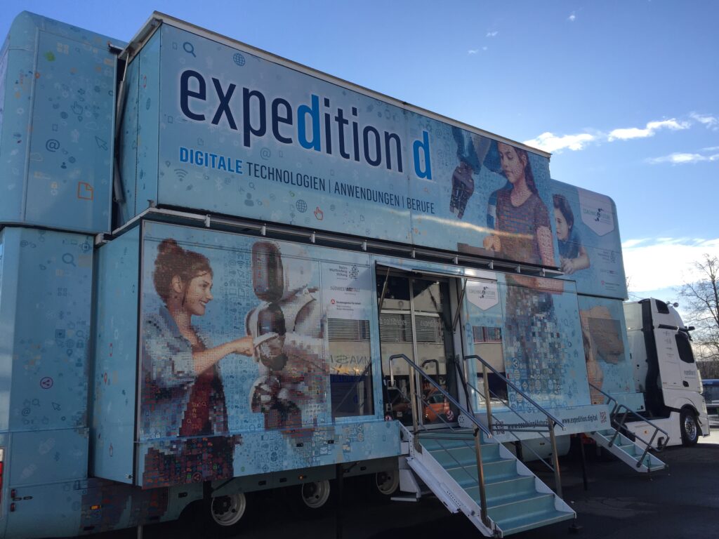 Bad Waldsee – Nach einer zweijährigen Bewerbungsphase des Gymnasium Bad Waldsee um einen erneuten Besuch des Erlebnis-Lern-Trucks, in dem Jugendliche die Technologien der digitalisierten Arbeitswelt erkunden können, hieß es nun „einsteigen“. Am Montag und Dienstag, 11. und 12. März, hatten die Schüler und Schülerinnen der Klassen 9 Gelegenheit, in der mobilen Mitmach-Ausstellung an Technikstationen und bei Workshops die Welt der digitalen Technologien zu erkunden.