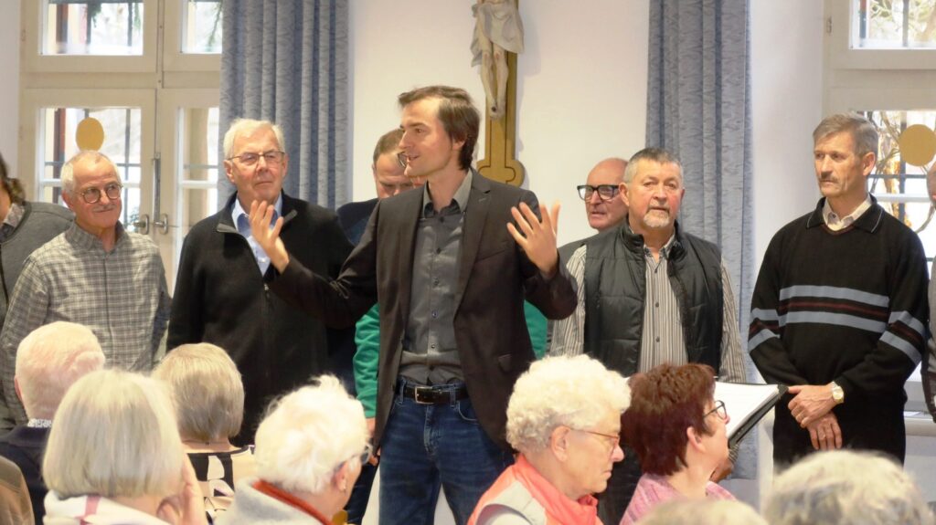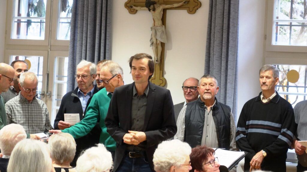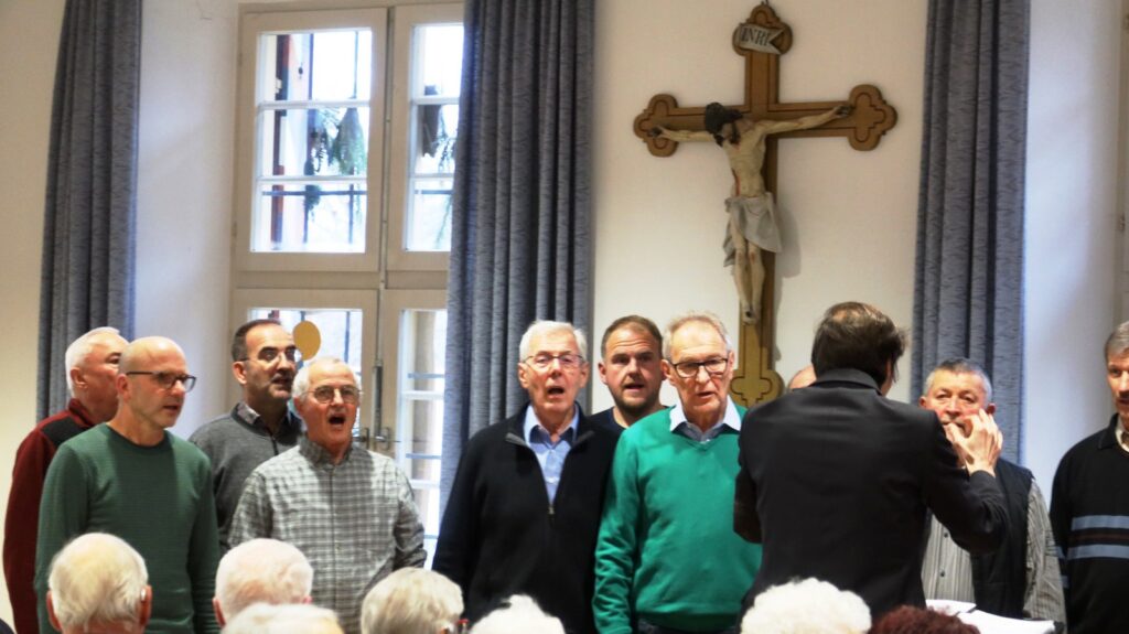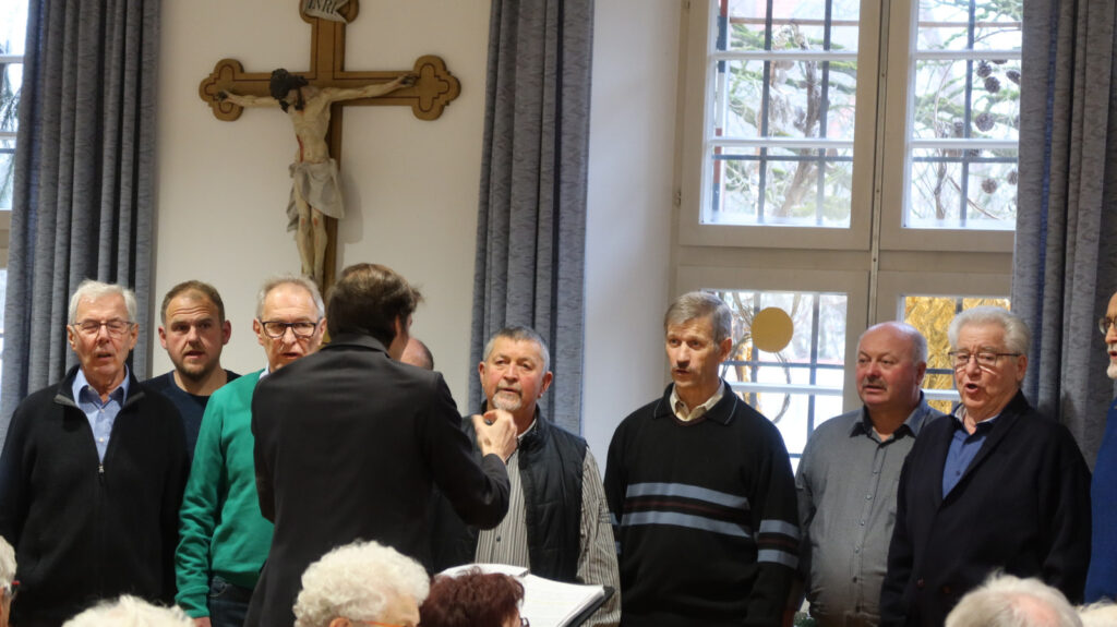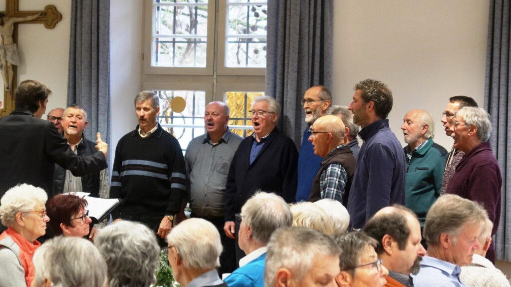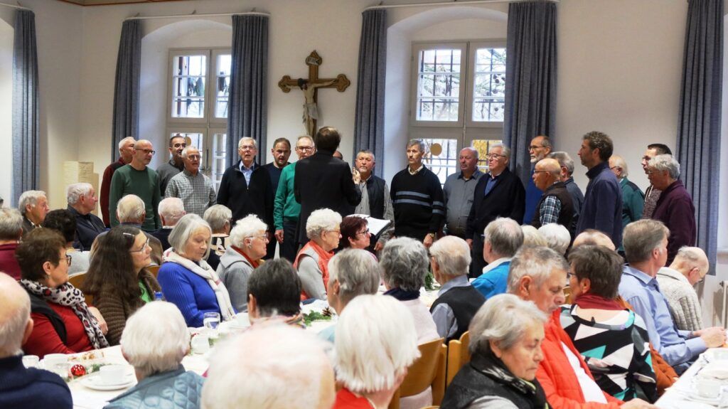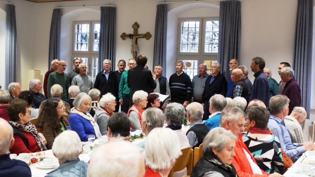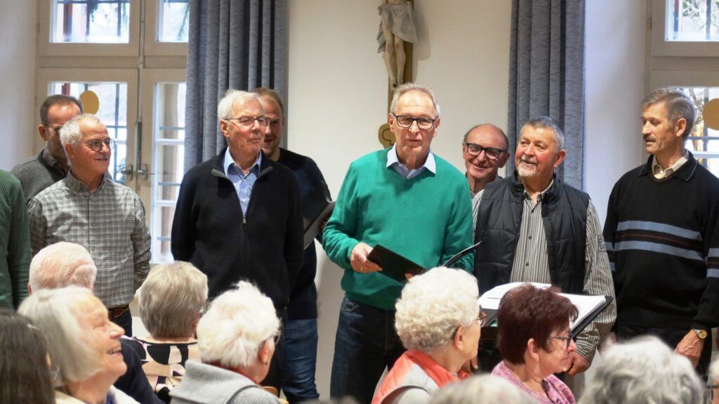 Unter musikalischer Leitung von Claudius Maier eröffnete der Chor mit „Advent ist ein Leuchten“, „Zünd a Licht für Di a“, „Maria durch ein Dornwald ging“ die viel beklatschte Gesangsrunde, die durch besinnliche und auch heitere Texte und Gedichte von Werner Schach, Werner Hirsch und Klaus Bohner ergänzt wurde. Weitere Gesangsbeiträge folgten. Dirigent Claudius Maier bat dann die ganze Runde zum Mitsingen der Lieder „Macht hoch die Tür“, „Alle Jahre wieder“ und ganz zum Schluss mit dem Lied „Tochter Zion“. Liedtexte waren dazu ausgelegt worden, denn gemeinsames Singen etlicher Adventslieder gehörte natürlich zum Senioren-Treffen in der Vorweihnachtszeit dazu.