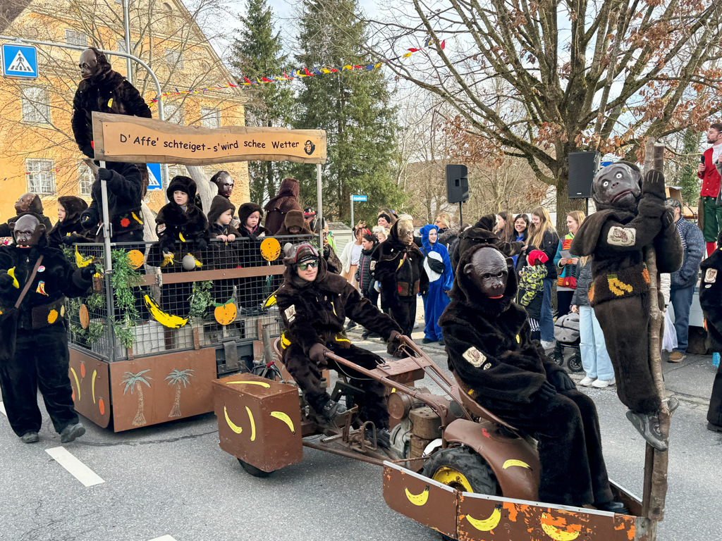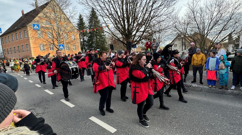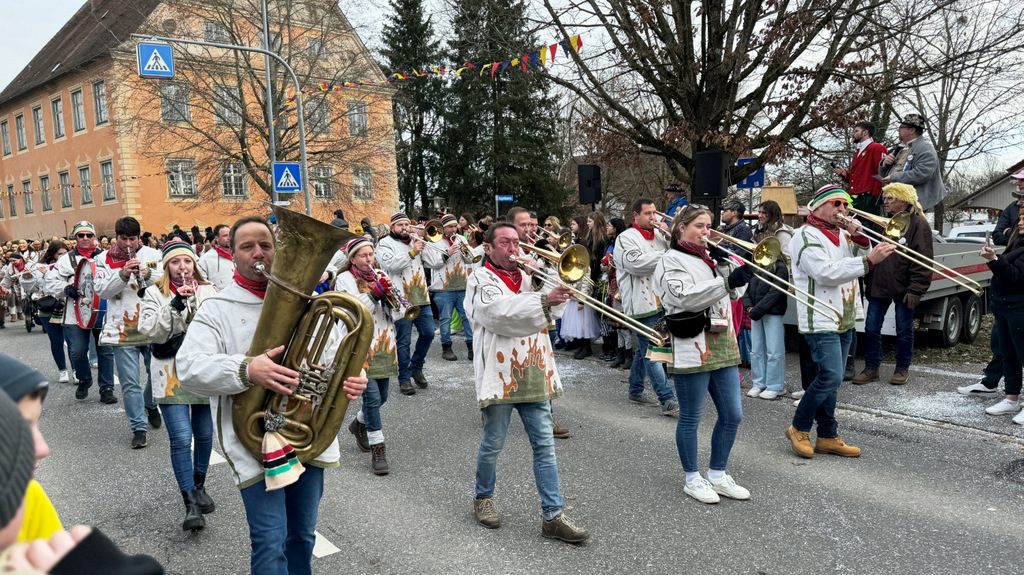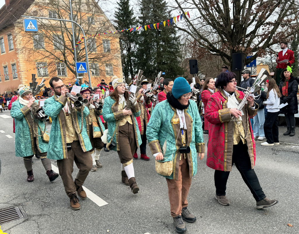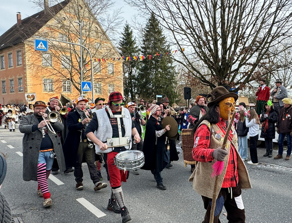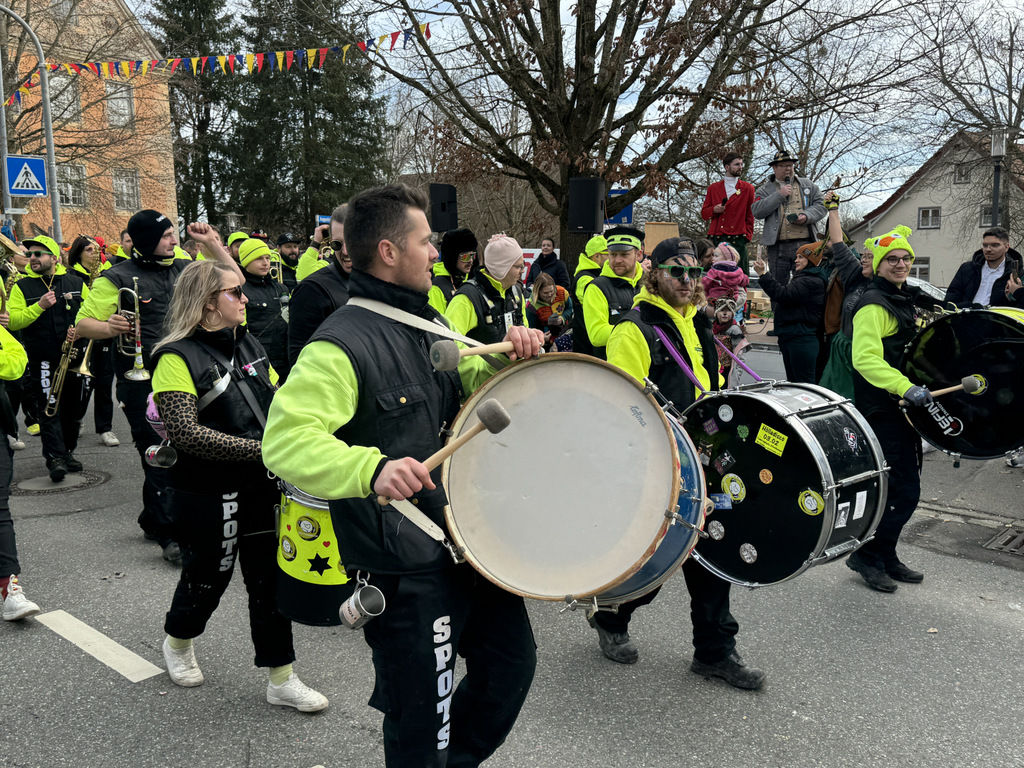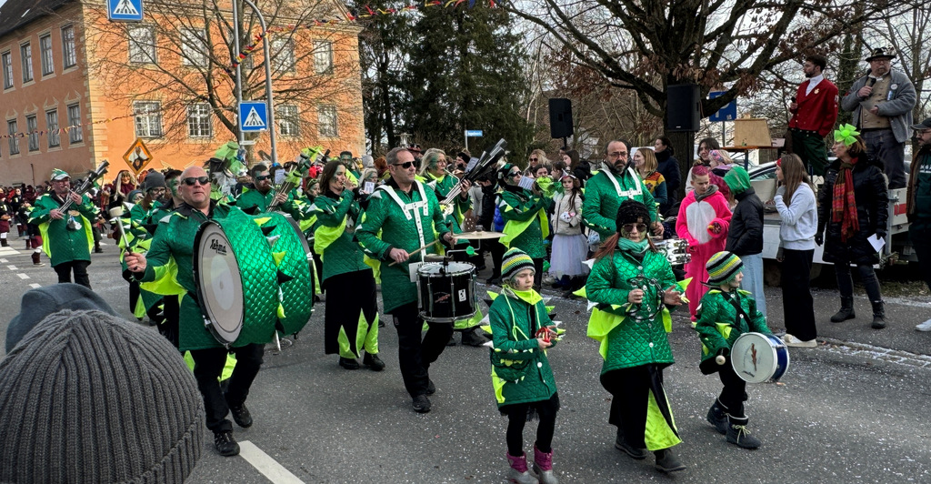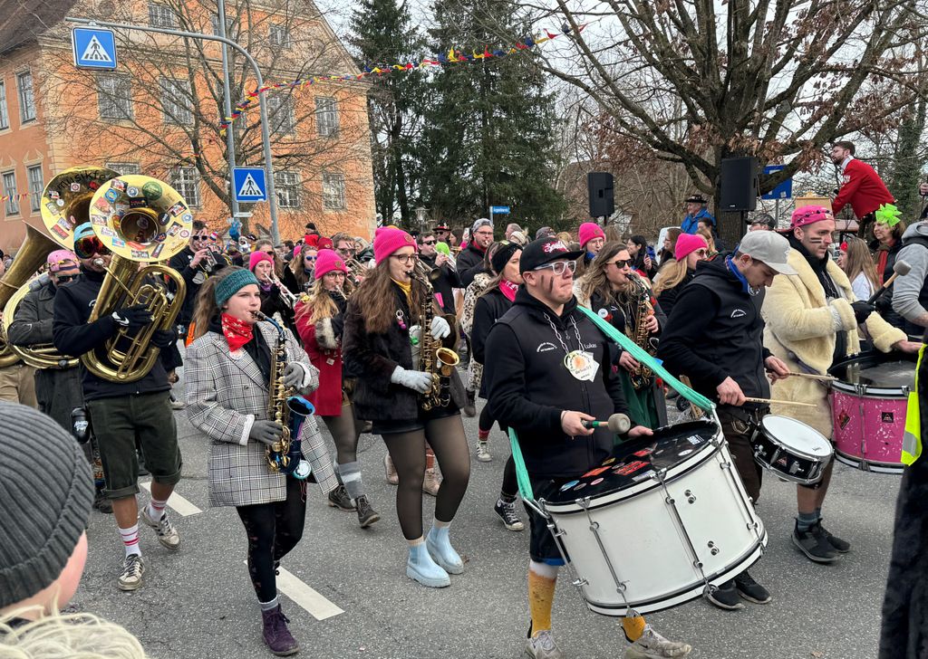 Dichten Menschenketten am Straßenrand verfolgten das närrische Umzugsgeschehen auch heuer. Dieses Mal sorgten 20 Musikgruppen aus nah und fern für schmissige, närrische Klänge und spielten unverdrossen Fasnachtsmärsche, fasnachtliche Ohrwürmer und heiße Rhythmen. Die Zuschauer klatschten eifrig mit und manche bewegten sich sogar zum Takt der Musik nach links, nach rechts, sogar vor und zurück
